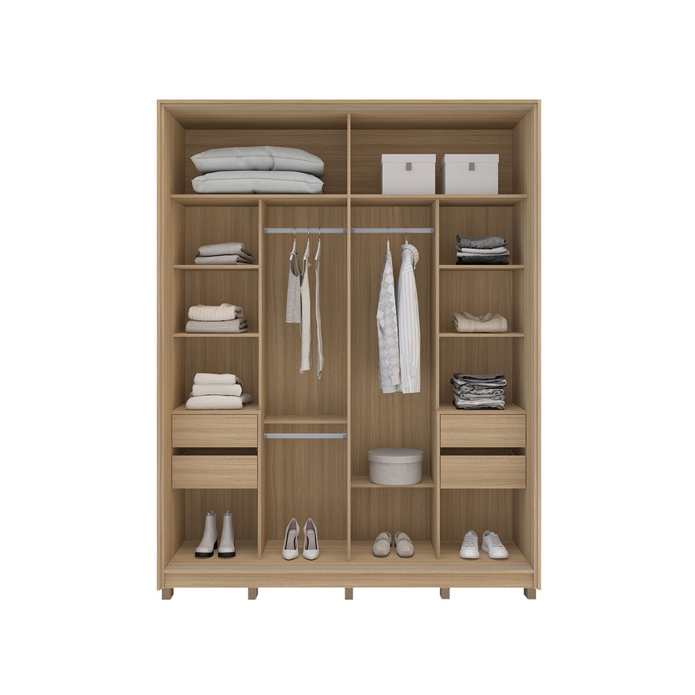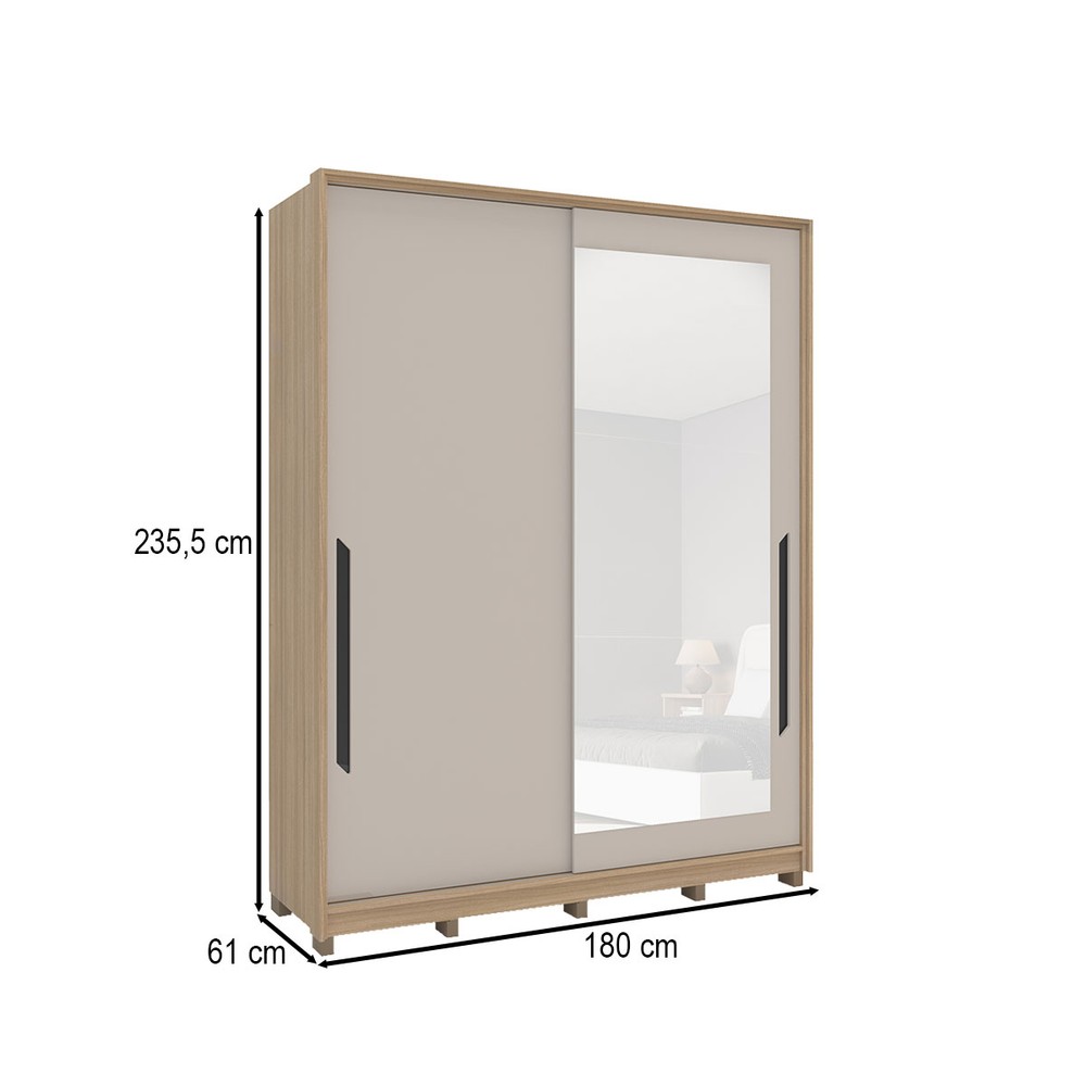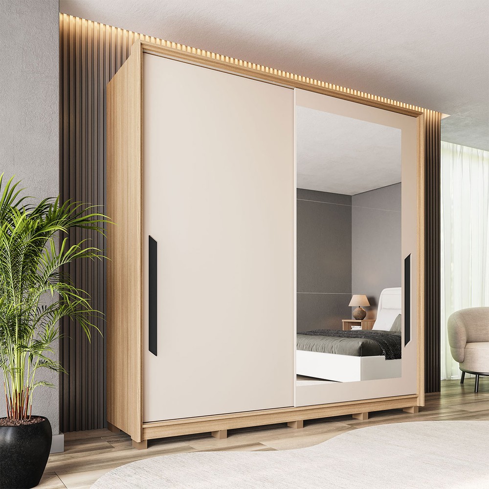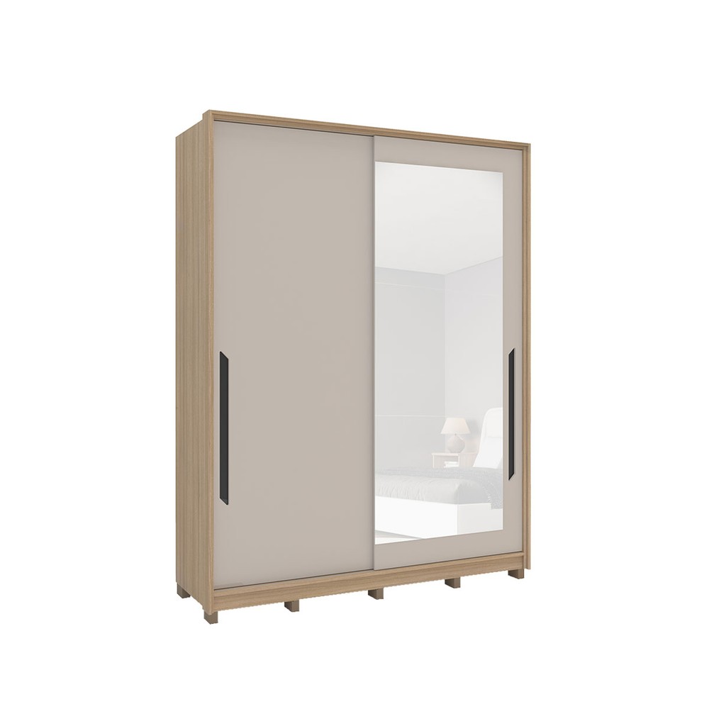 Guarda-Roupa Casal Barcelona 2 Portas 4 Gavetas com Espelho Carvalho/Off White - Politorno