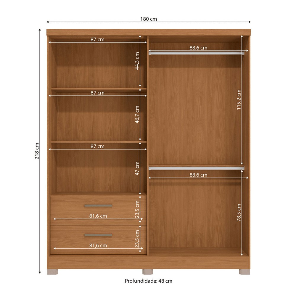 Guarda-Roupa Casal Baume 3 Portas 2 Gavetas Canela - Kappesberg