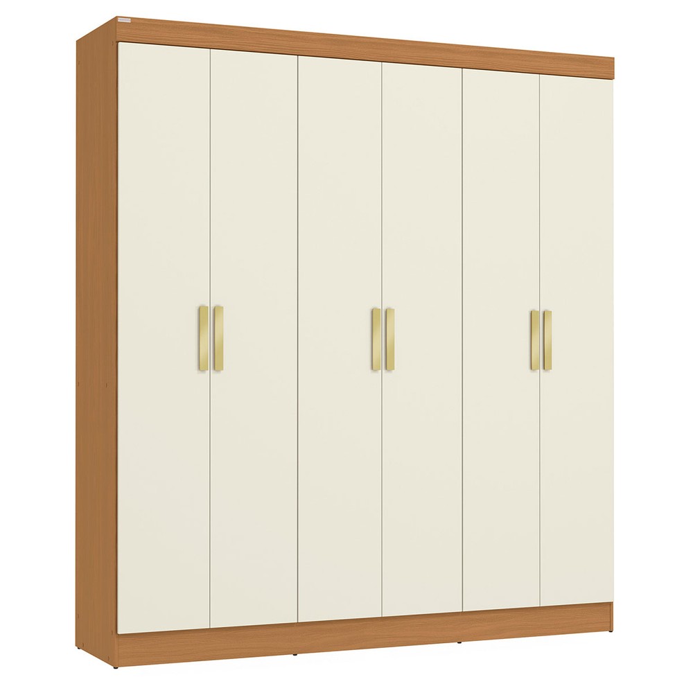 Guarda-Roupa Casal Baume 6 Portas 2 Gavetas Canela/Off White - Kappesberg