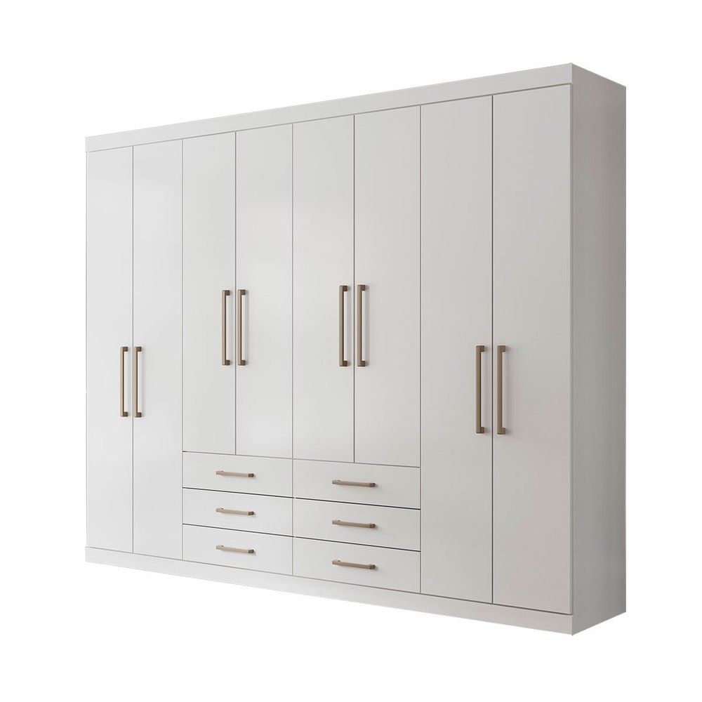 O(a) Guarda-Roupa Casal Belize 8 Portas 6 Gavetas Branco - Pnr Móveis é produzido em MDF e MDP na escala de brilho Semi-Brilho, e possui um grau de dificuldade de montagem: Médio.