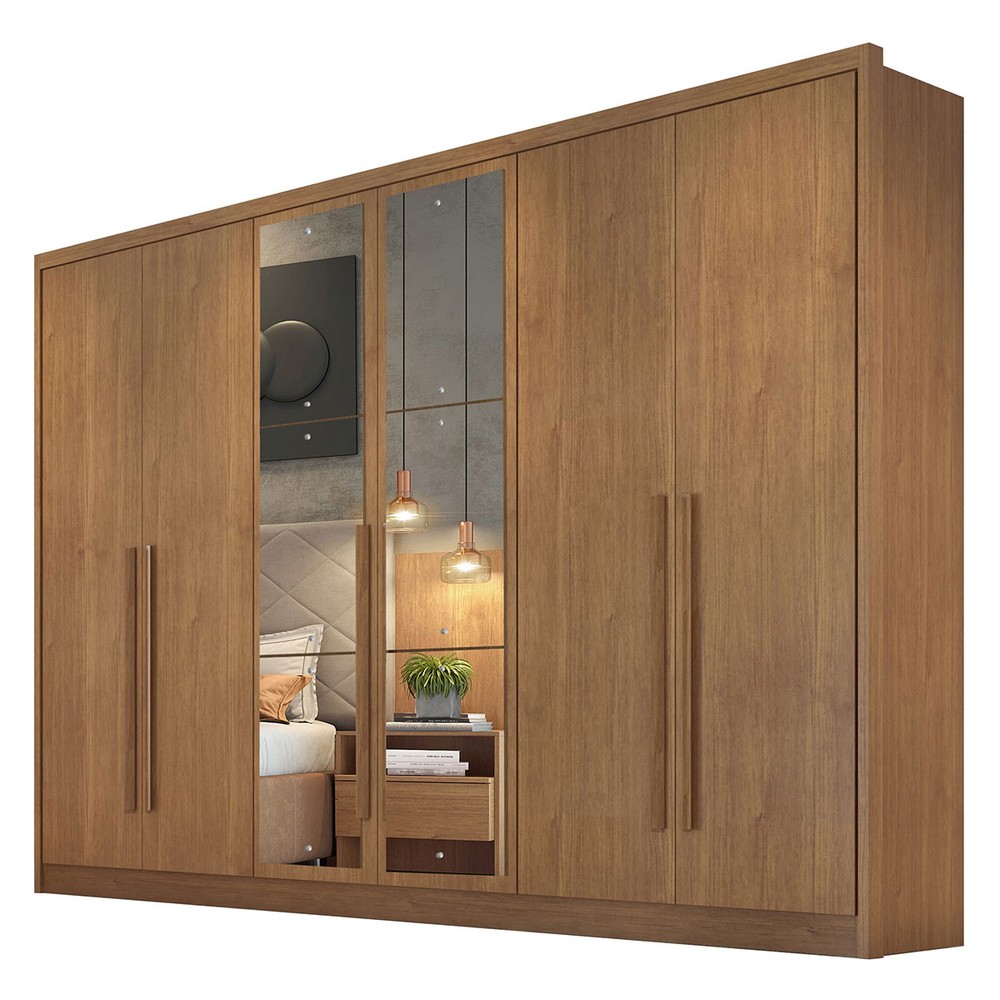 O(a) Guarda-Roupa Casal Livorno 6 Portas 6 Gavetas 100% Mdf com Espelho Cumaru/Fendi - Novo Horizonte é produzido em 100% MDF na escala de brilho Semi-Fosco, e possui um grau de dificuldade de montagem: Médio.