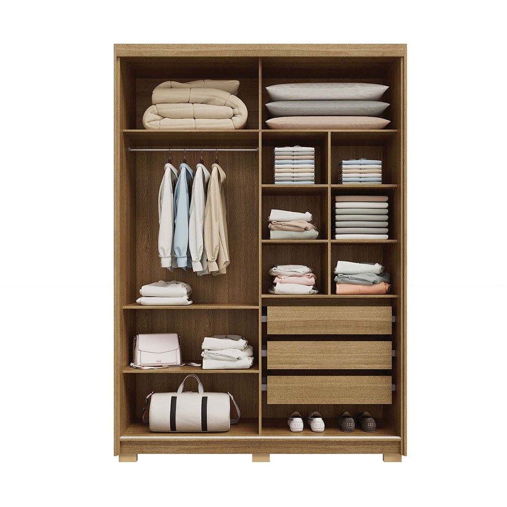 O(a) Guarda-Roupa Casal Cairo 2 Portas de Correr 3 Gavetas 100% Mdf Flex Nature/Alasca - Pnr Móveis é produzido em 100% MDF na escala de brilho Fosco, e possui um grau de dificuldade de montagem: Médio.