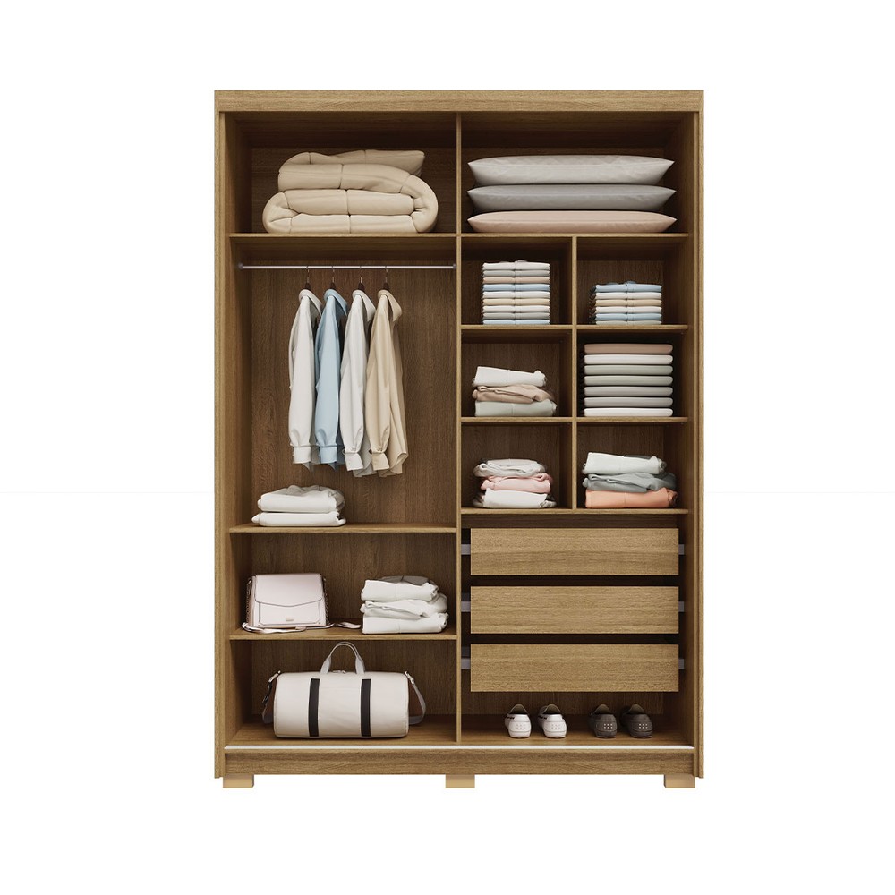 O(a) Guarda-Roupa Casal Cairo 2 Portas de Correr com Espelho 3 Gavetas 100% Mdf Flex Nature/Fendi - Pnr Móveis é produzido em 100% MDF na escala de brilho Fosco, e possui um grau de dificuldade de montagem: Médio.