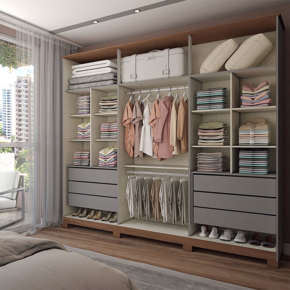 O(a) Guarda-Roupa Casal Calábria 6 Portas 6 Gavetas Cinza/Nature - Panorama Móveis é produzido em MDP na escala de brilho Fosco, e possui um grau de dificuldade de montagem: Médio.