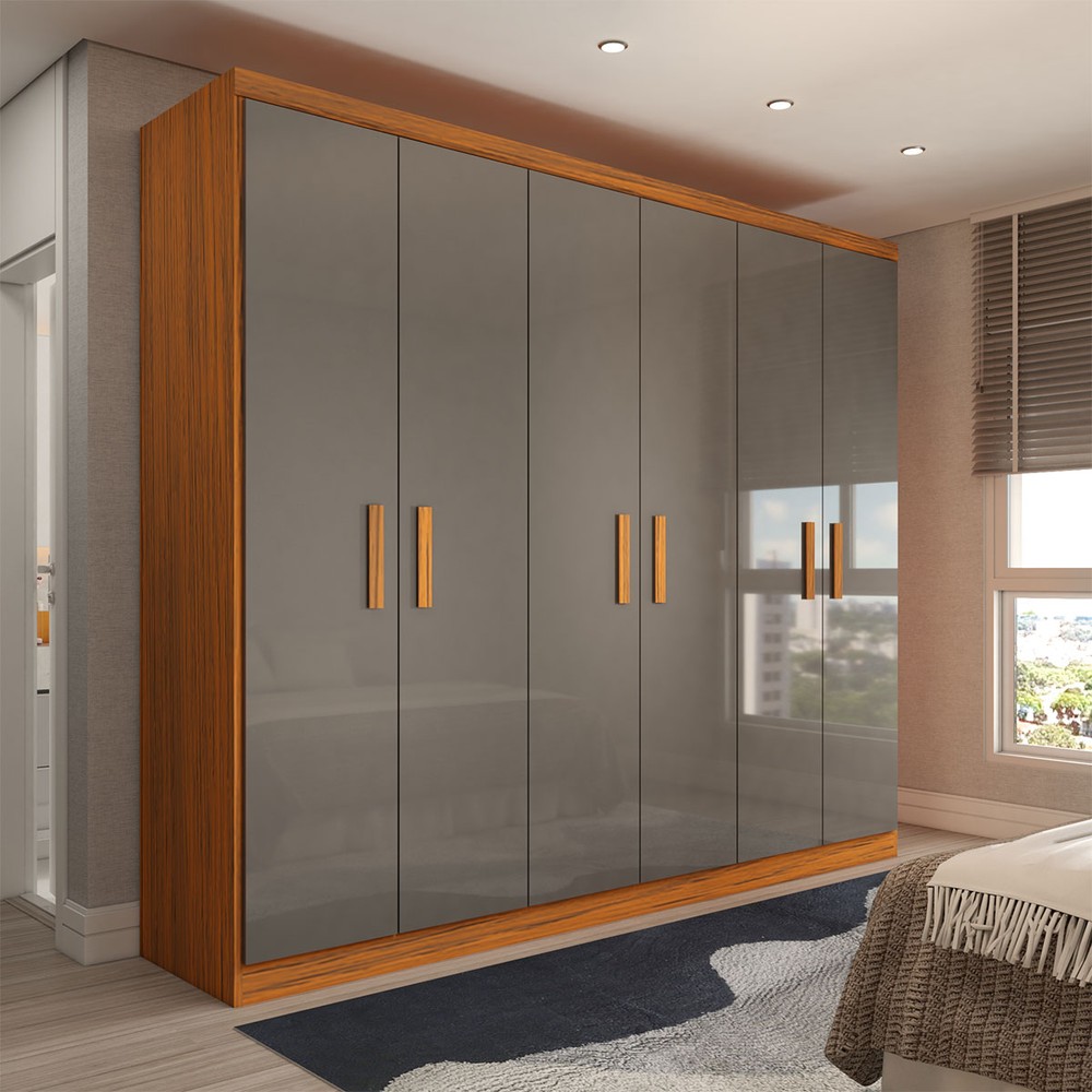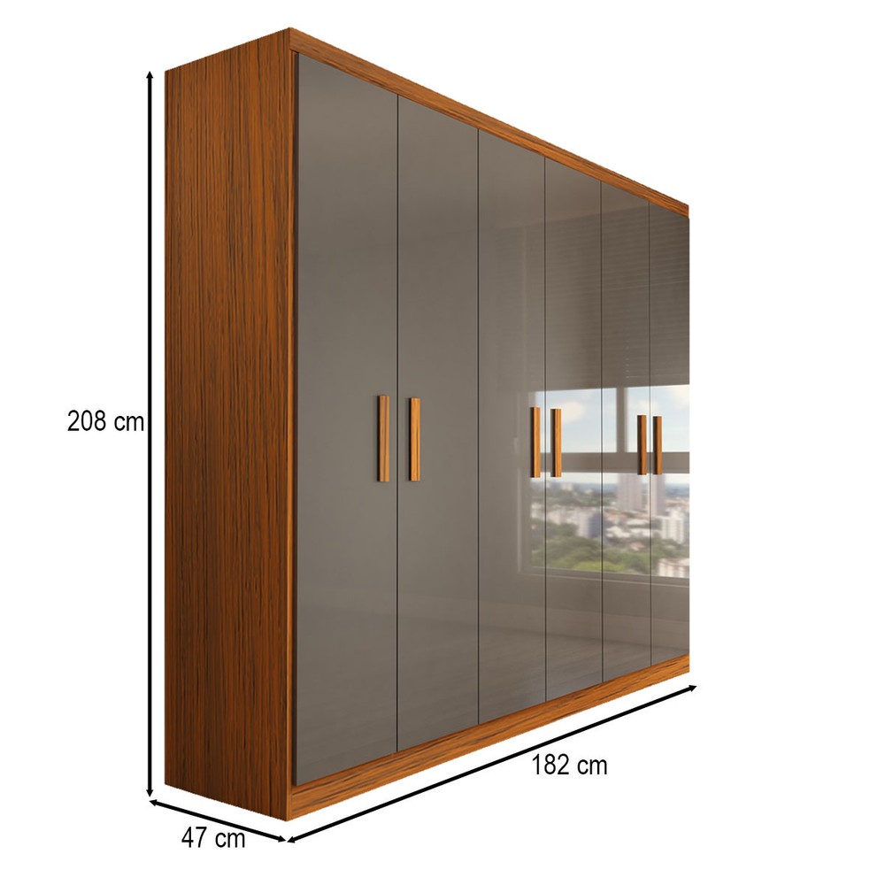 O(a) Guarda-Roupa Casal Califa 6 Portas 2 Gavetas Cinamomo/Grafite - Panorama Móveis é produzido em MDP na escala de brilho Brilho, e possui um grau de dificuldade de montagem: Médio.