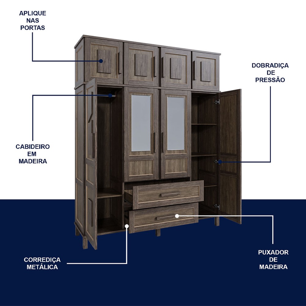 O(a) Guarda-Roupa Casal Campo Grande 8 Portas 2 Gavetas com Espelho Imbuia - Rodmoveis é produzido em Madeira Maciça e HDF na escala de brilho Brilho, e possui um grau de dificuldade de montagem: Médio.