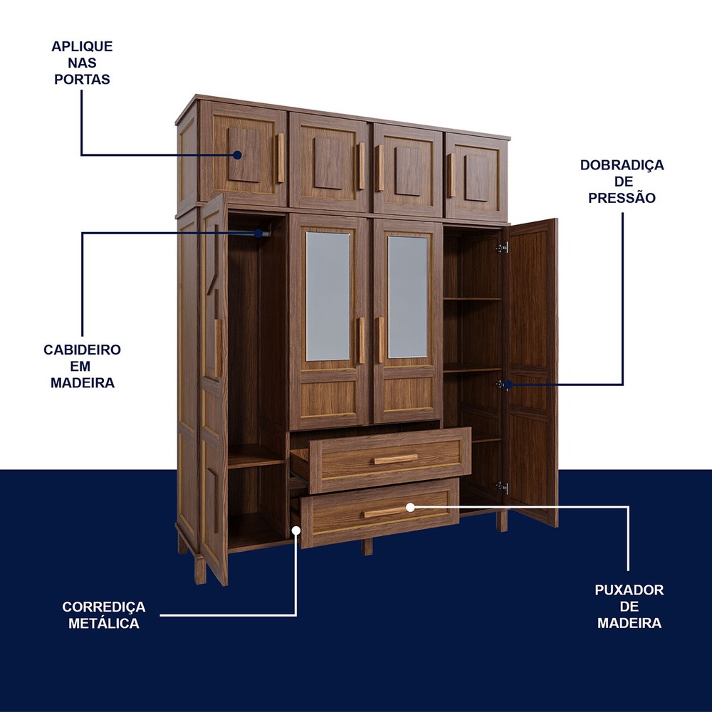 O(a) Guarda-Roupa Casal Campo Grande 8 Portas 2 Gavetas com Espelho Ypê - Rodmoveis é produzido em Madeira Maciça e HDF na escala de brilho Brilho, e possui um grau de dificuldade de montagem: Médio.