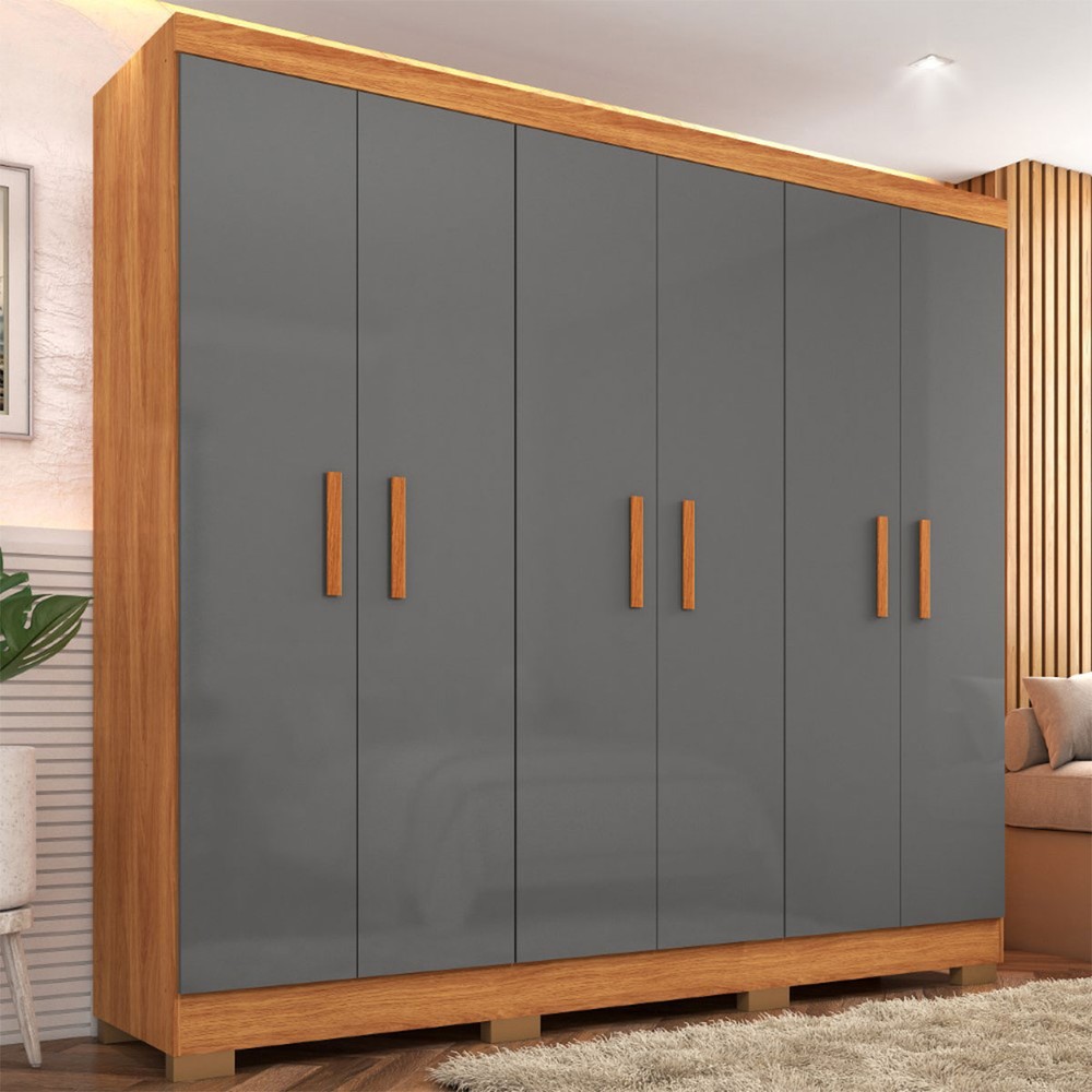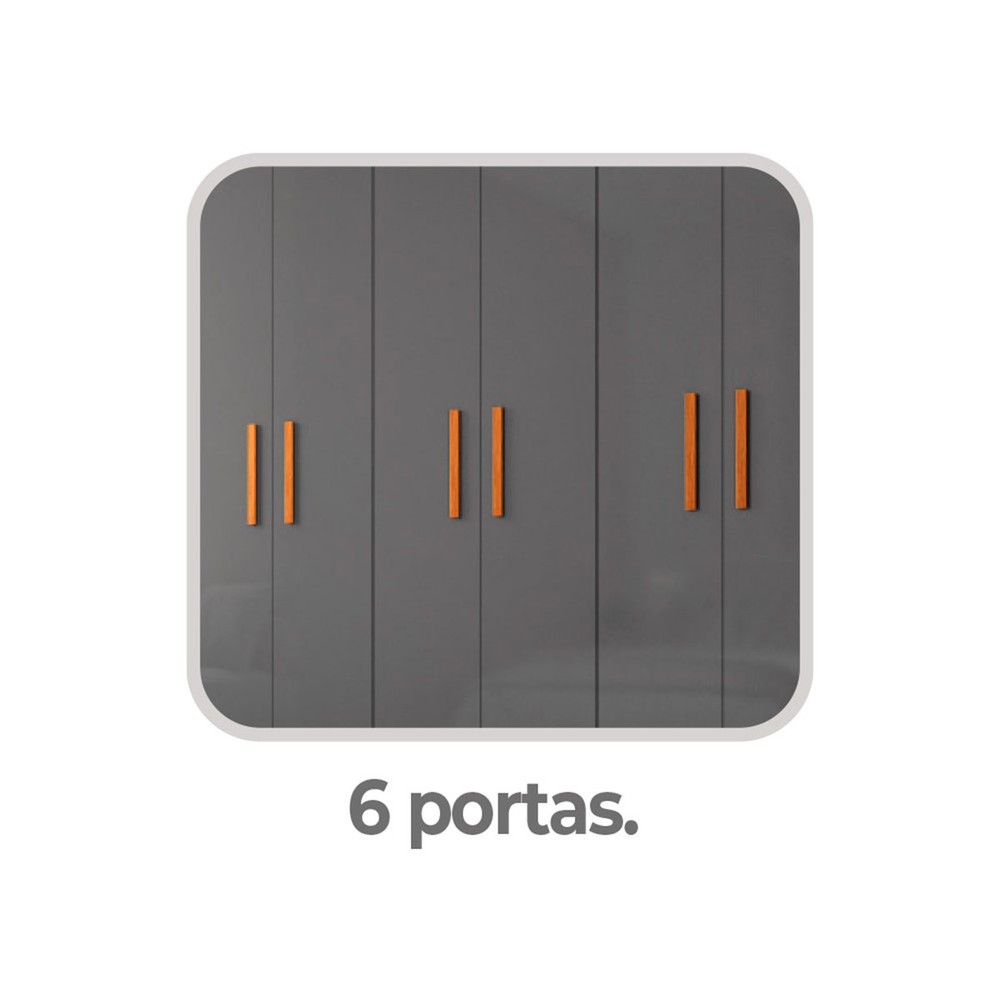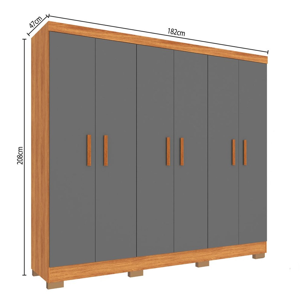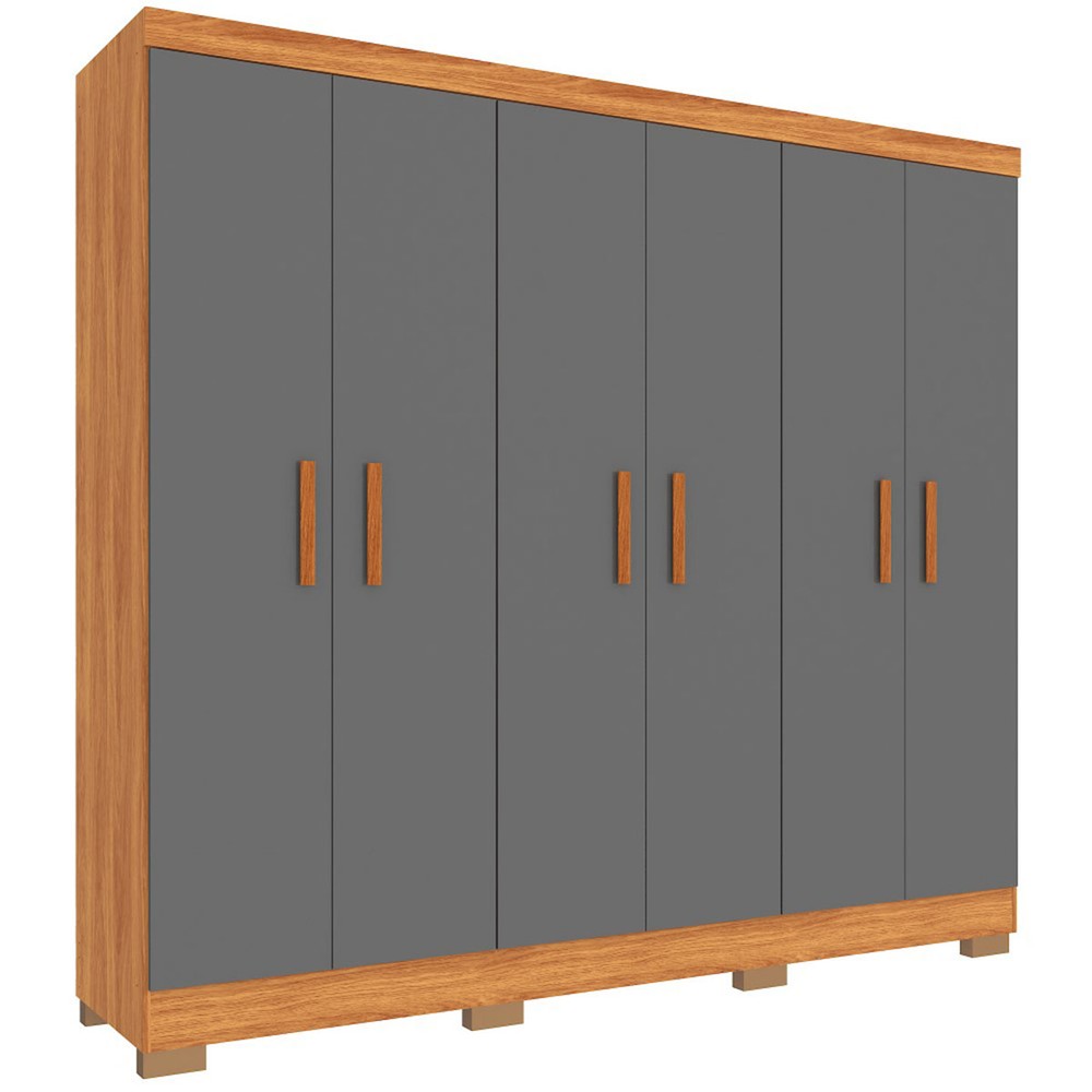 Guarda-Roupa Casal Cancun 6 Portas 2 Gavetas Cinamomo/Grafite - Fellicci