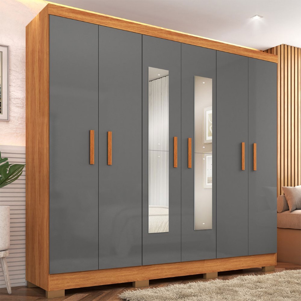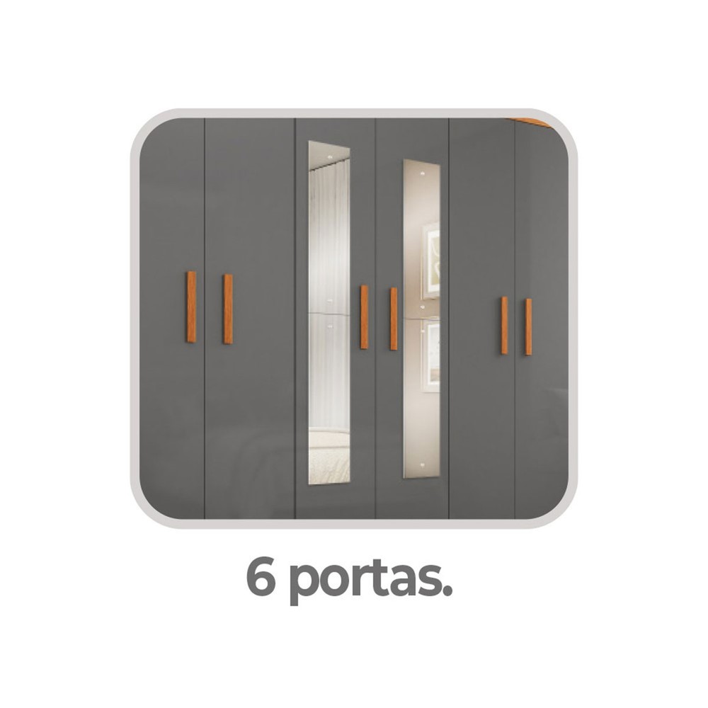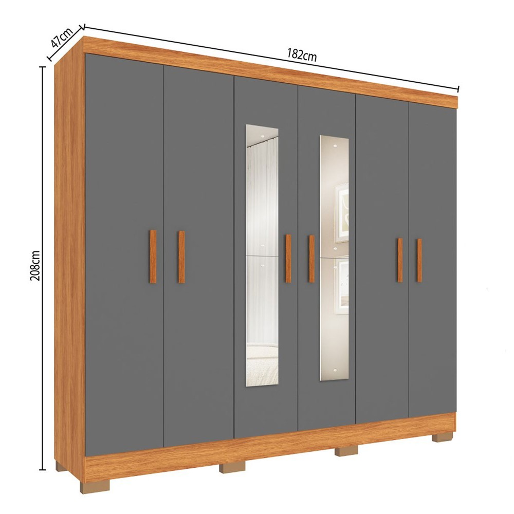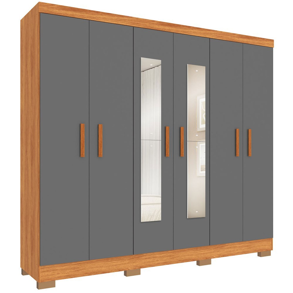 Guarda-Roupa Casal Cancun 6 Portas 2 Gavetas com Espelho Cinamomo/Grafite - Fellicci