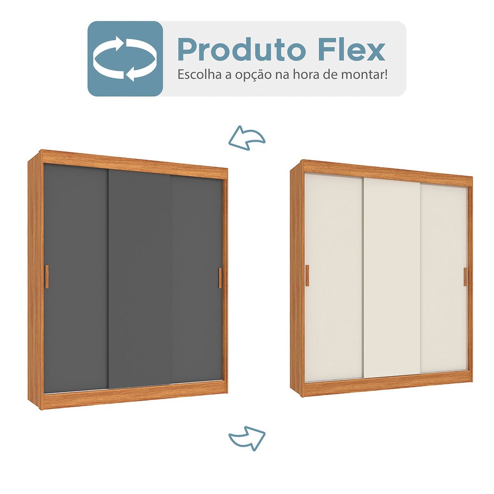 Guarda-Roupa Casal Capri 3 Portas 4 Gavetas Flex Cinamomo/Grafite/Off White - Fellicci
