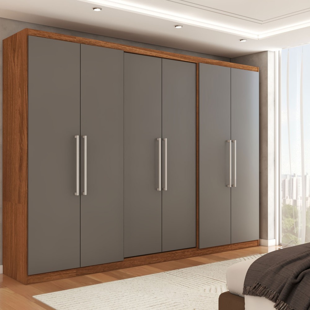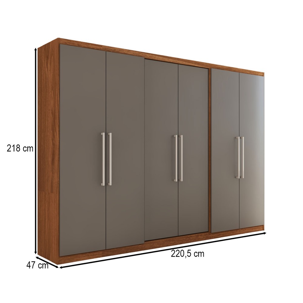 O(a) Guarda-Roupa Casal City 6 Portas 2 Gavetas Freijó/Cinza - Panorama Móveis é produzido em MDP na escala de brilho Brilho, e possui um grau de dificuldade de montagem: Médio.