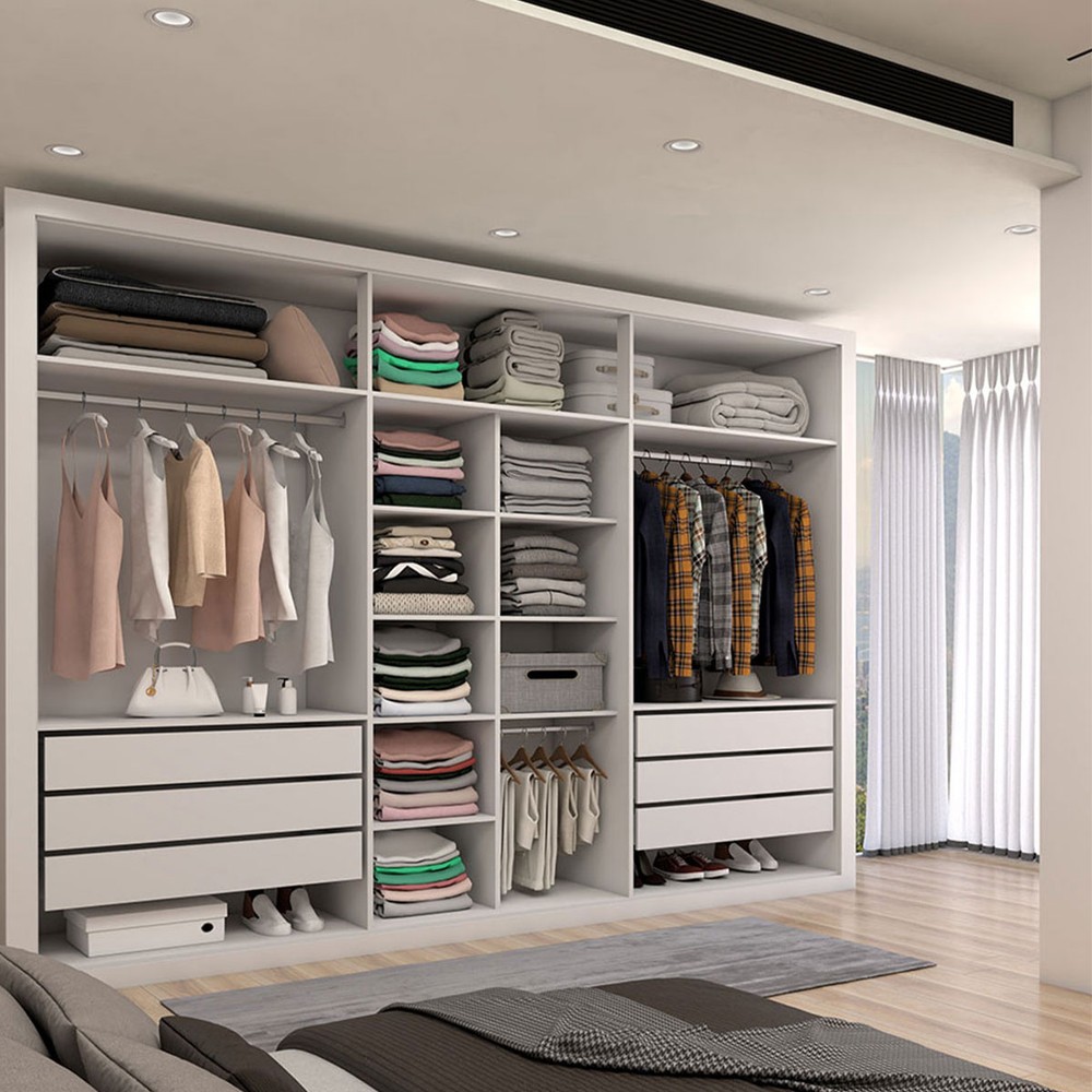 O(a) Guarda-Roupa Casal Classic 6 Portas 6 Gavetas 100% Mdf com Espelho Branco - Panorama Móveis é produzido em 100% MDF na escala de brilho Fosco, e possui um grau de dificuldade de montagem: Médio.