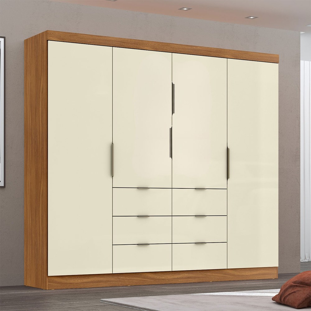 Guarda-Roupa Casal Click 4 Portas 6 Gavetas Cinamomo/Off White - Maxel