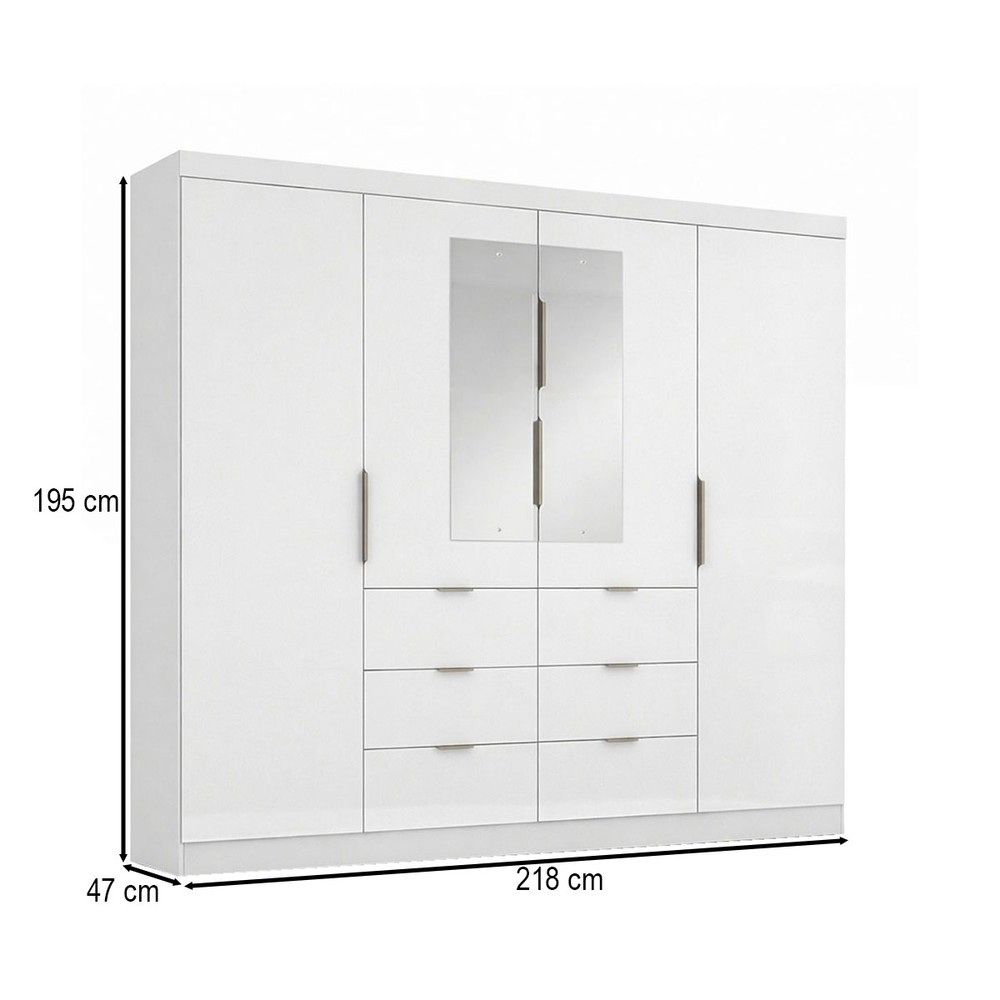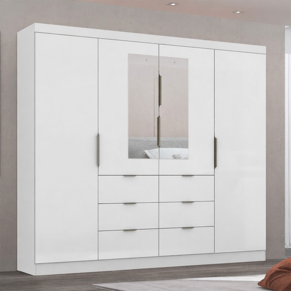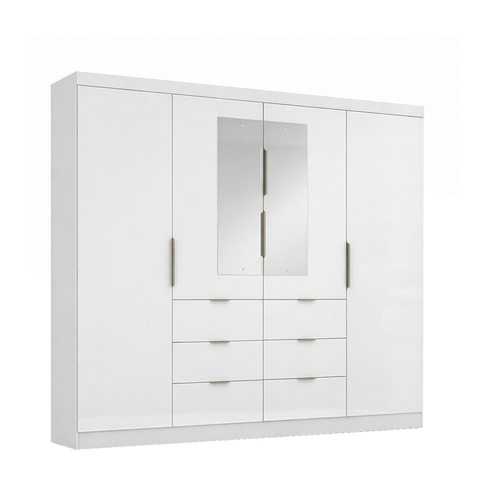 Guarda-Roupa Casal Click 4 Portas 6 Gavetas com Espelho Branco - Maxel