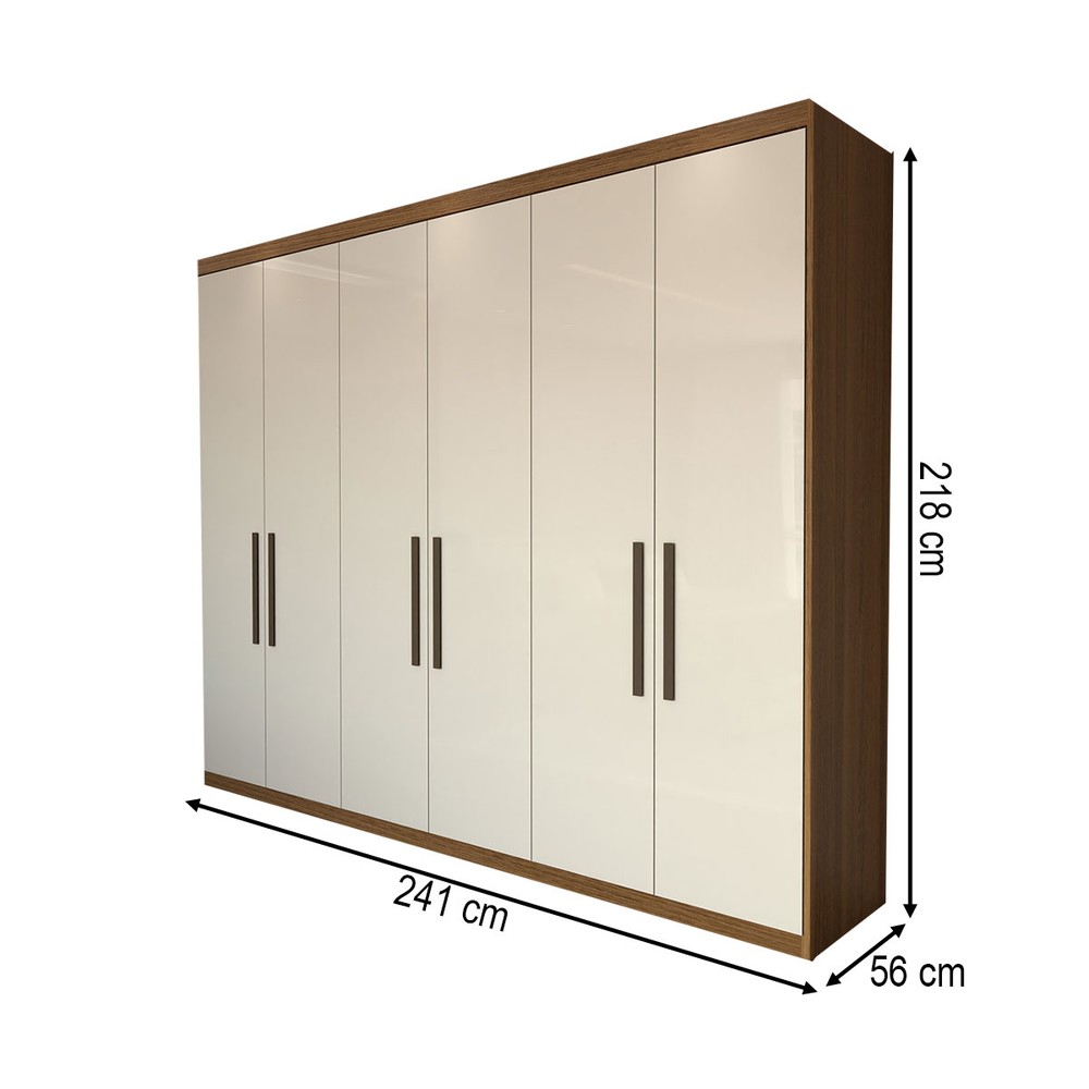 Guarda-Roupa Casal Closetto 6 Portas 4 Gavetas 100% Mdf Amêndola Touch/Off White - Panorama Móveis