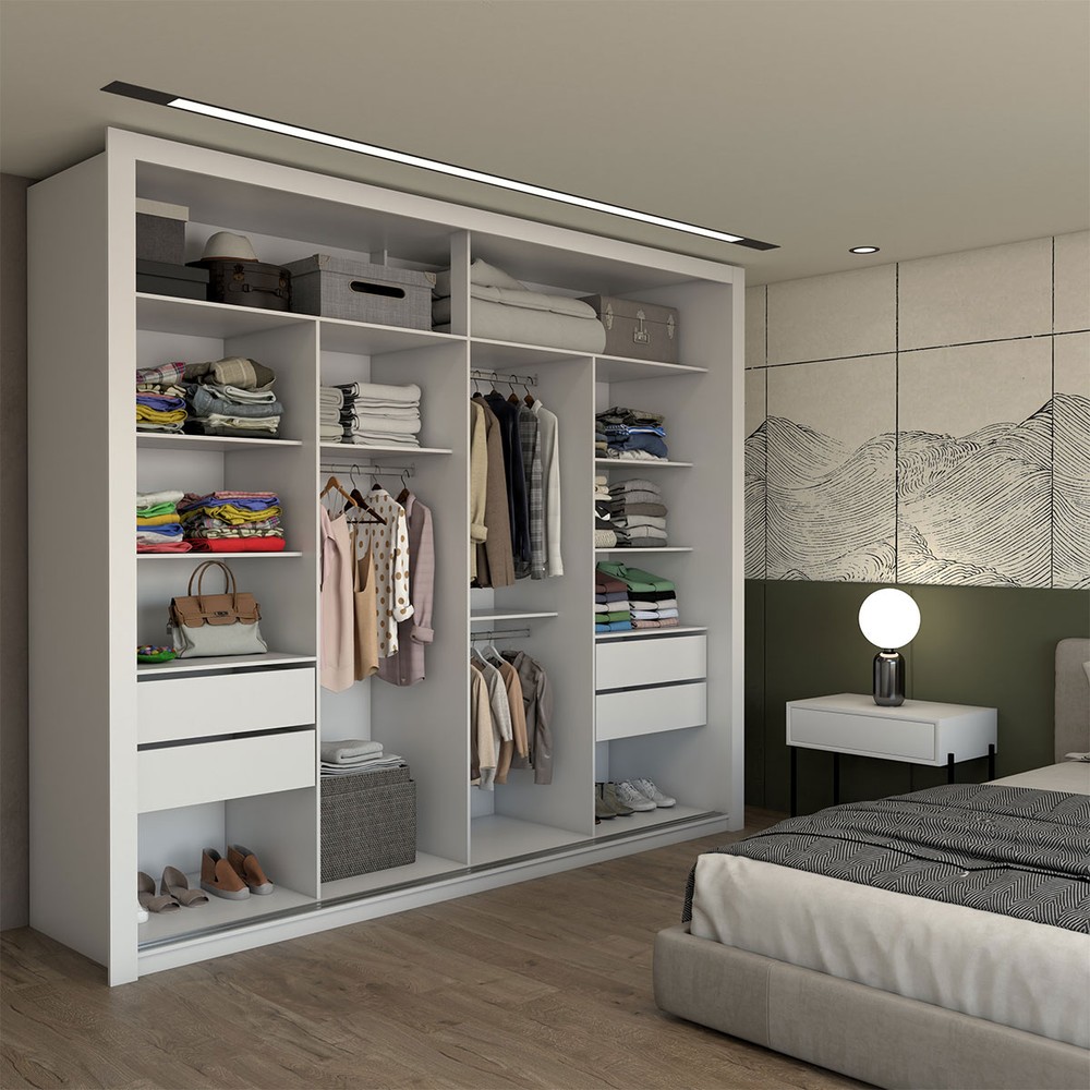 O(a) Guarda-Roupa Casal Romanus 2 Portas 4 Gavetas com Espelho Branco - Caemmun é produzido em MDP na escala de brilho Fosco, e possui um grau de dificuldade de montagem: Difícil.