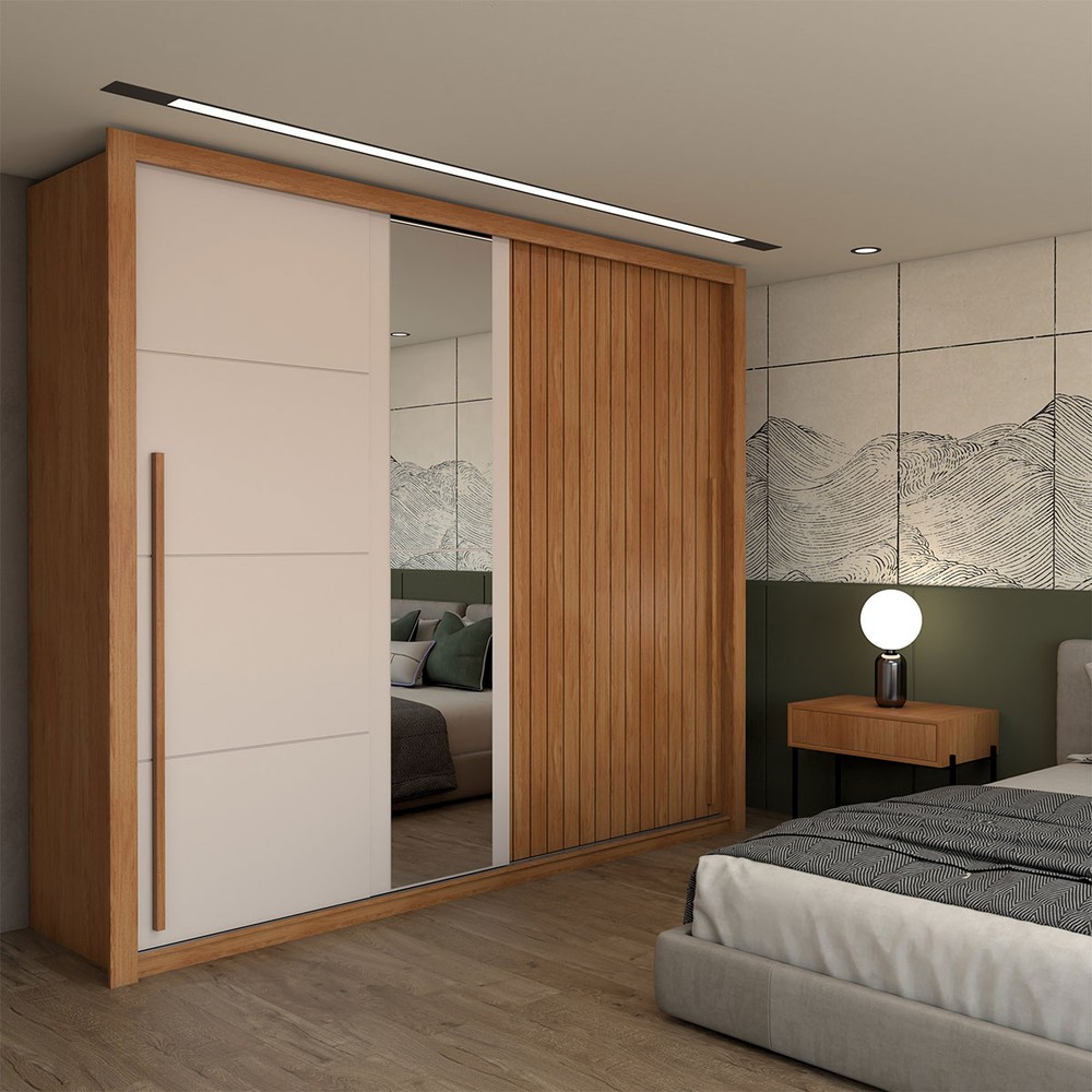 O(a) Guarda-Roupa Casal Coliseu 2 Portas 4 Gavetas com Espelho Freijó/Off White - Panorama Móveis é produzido em MDP na escala de brilho Fosco, e possui um grau de dificuldade de montagem: Difícil.