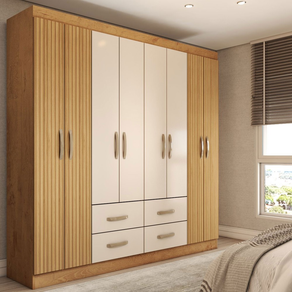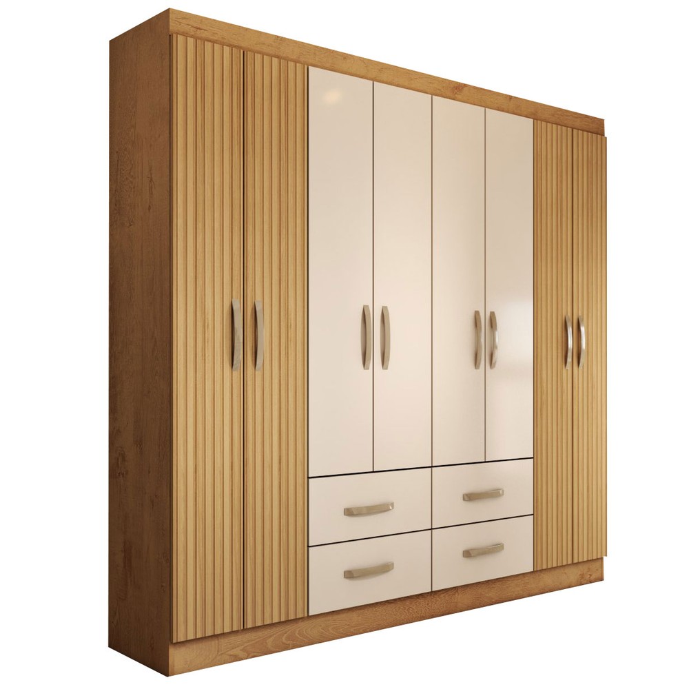 Guarda-Roupa Casal Colossus 8 Portas 4 Gavetas Ripado Pintura 3d Canelato/Natura - Panorama Móveis