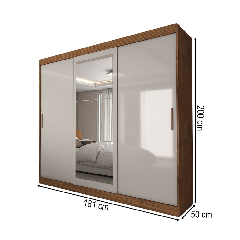 Guarda-Roupa Casal Columbia 3 Portas 2 Gavetas com Espelho 100% Mdf Off White/Nogueira - Panorama Móveis