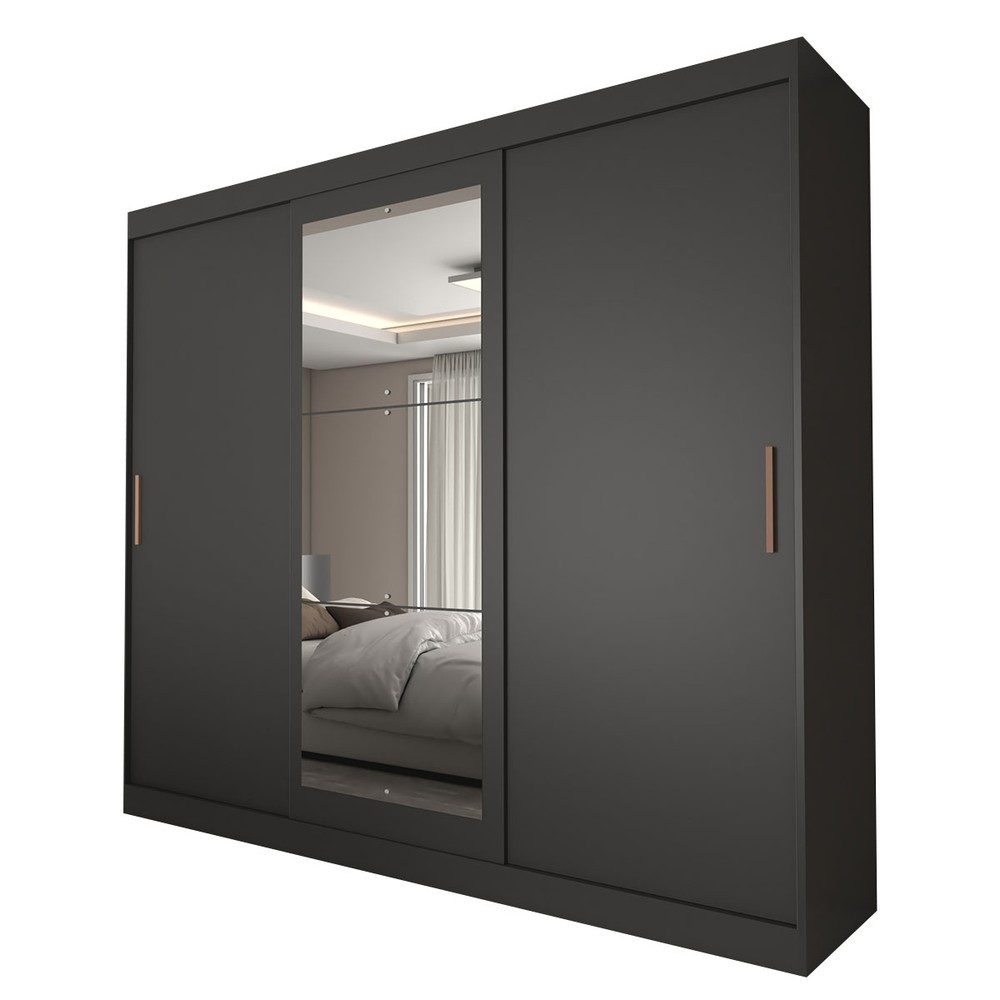 Guarda-Roupa Casal Columbia 3 Portas 2 Gavetas com Espelho 100% Mdf Preto - Panorama Móveis