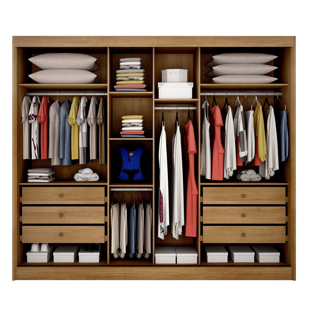 O(a) Guarda-Roupa Casal Duna 3 Portas 6 Gavetas 100% Mdf com Espelho Cumaru - Novo Horizonte é produzido em 100% MDF na escala de brilho Semi-Fosco, e possui um grau de dificuldade de montagem: Médio.