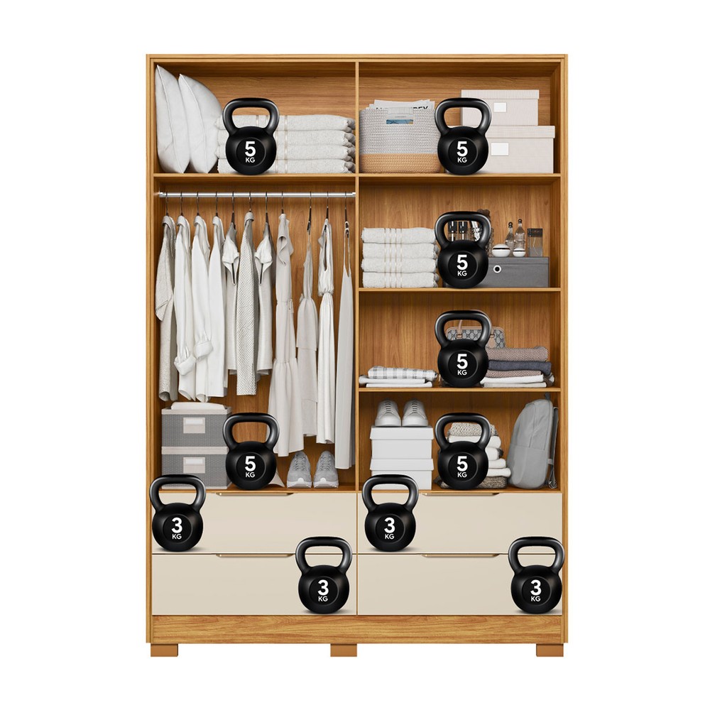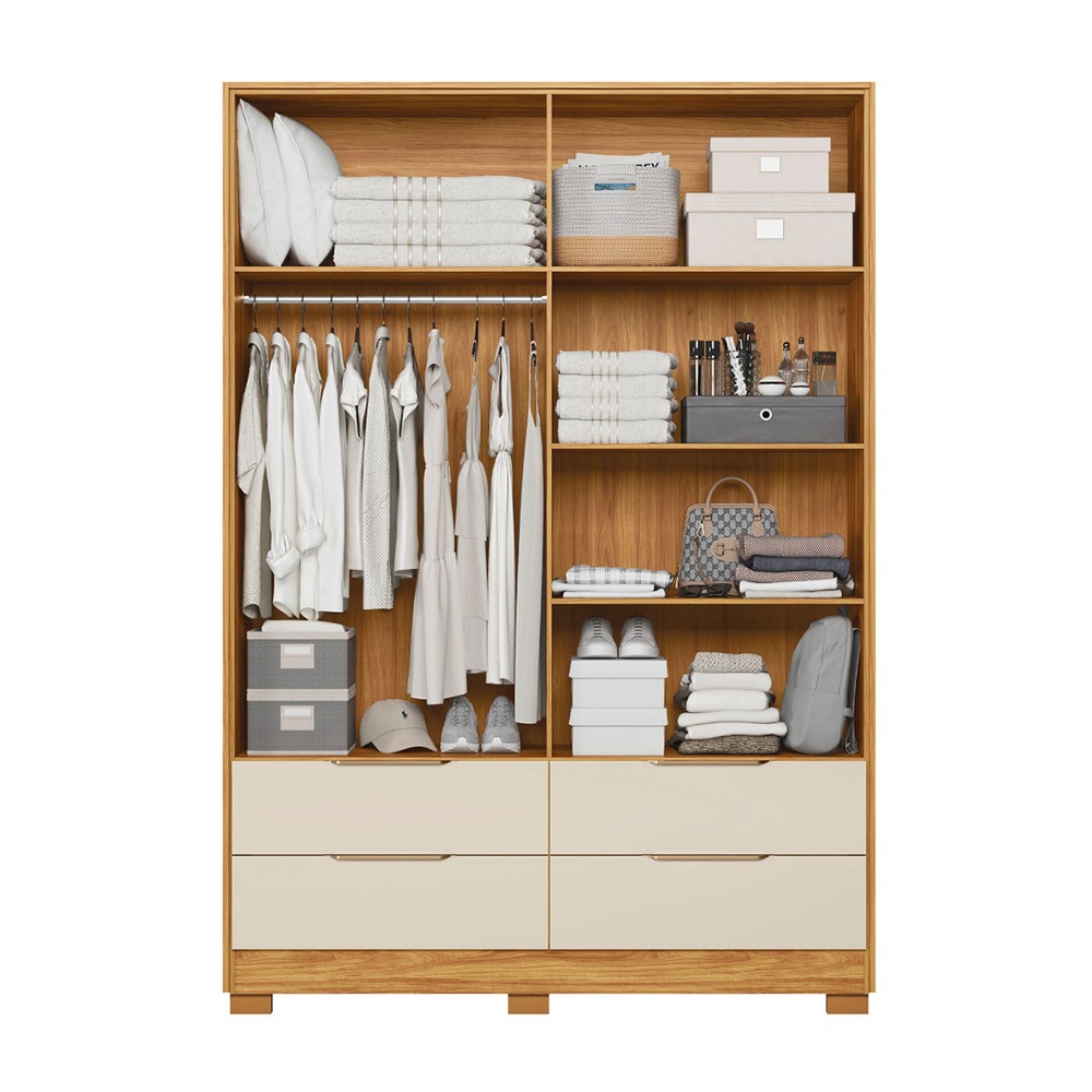 Guarda-Roupa Casal Domo 4 Portas 4 Gavetas Cinamomo/Off White - Demobile