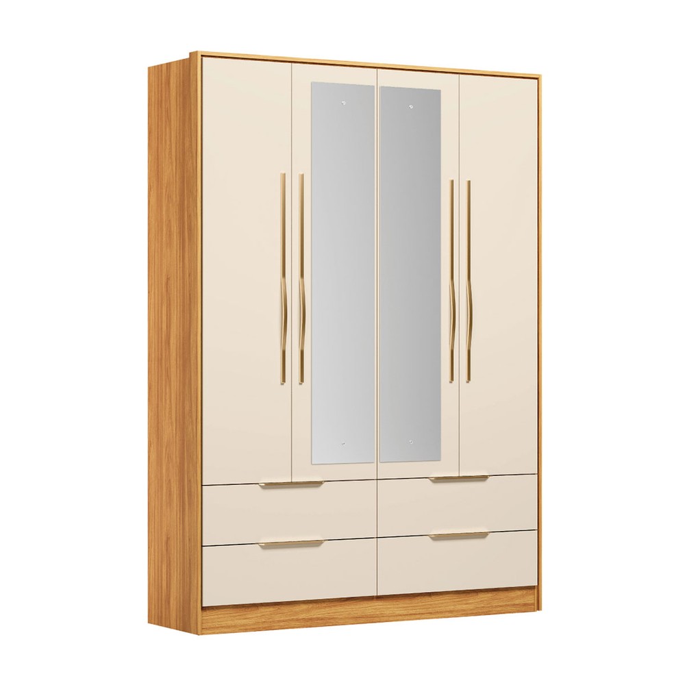 Guarda-Roupa Casal Domo 4 Portas 4 Gavetas com Espelho 44020 Cinamomo/Off White - Demóbile