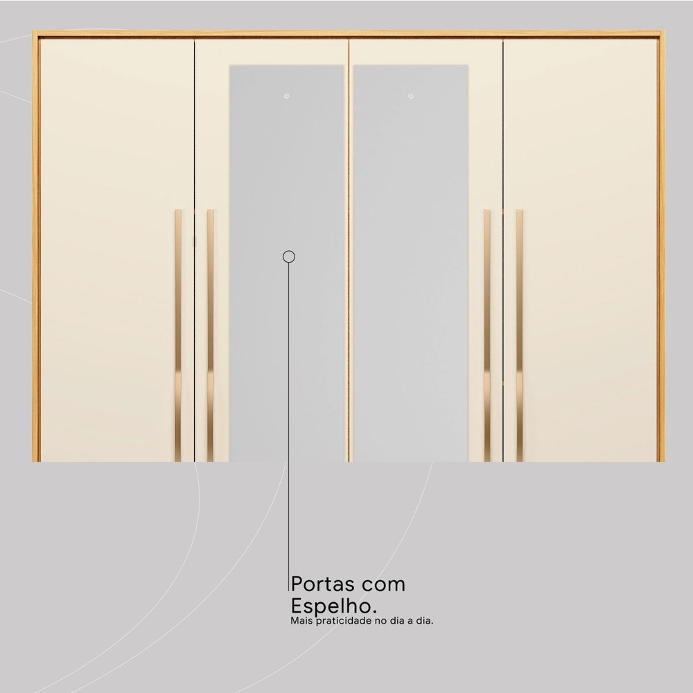 Guarda-Roupa Casal Domo 4 Portas 4 Gavetas com Espelho Cinamomo/Off White - Demóbile
