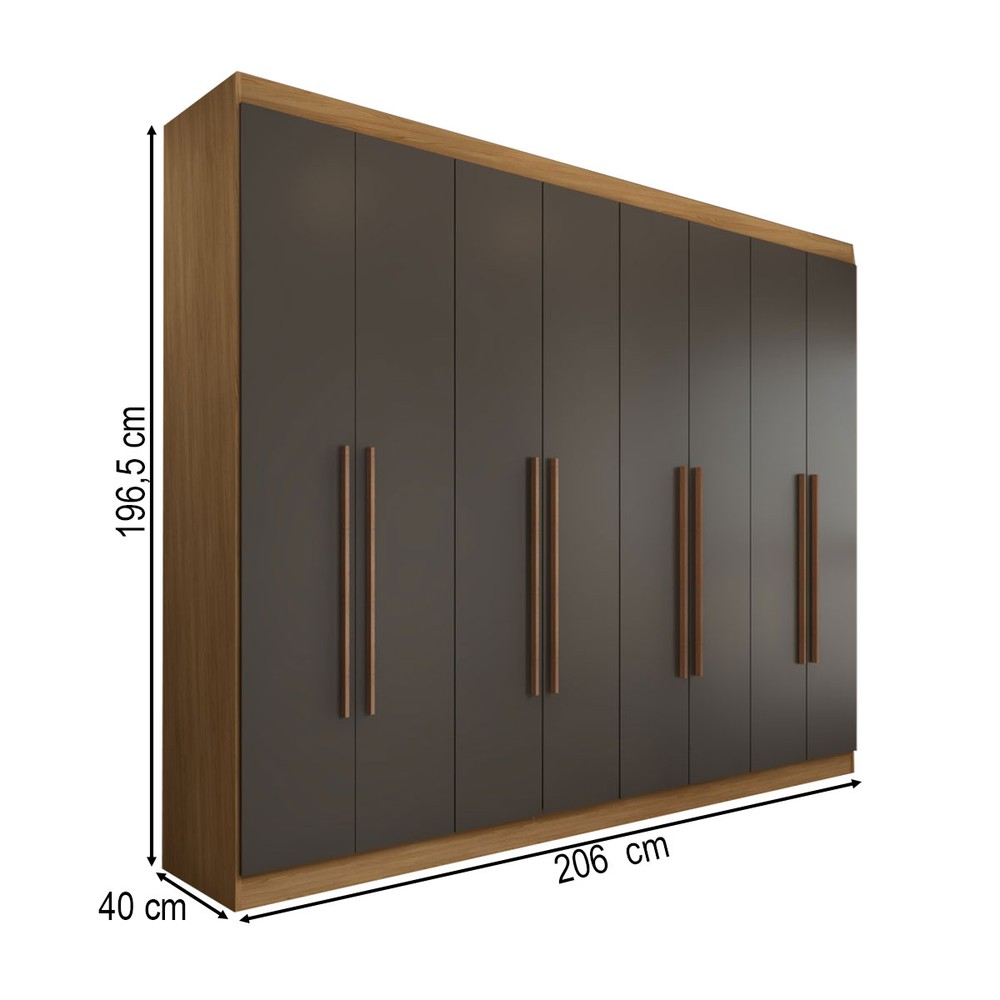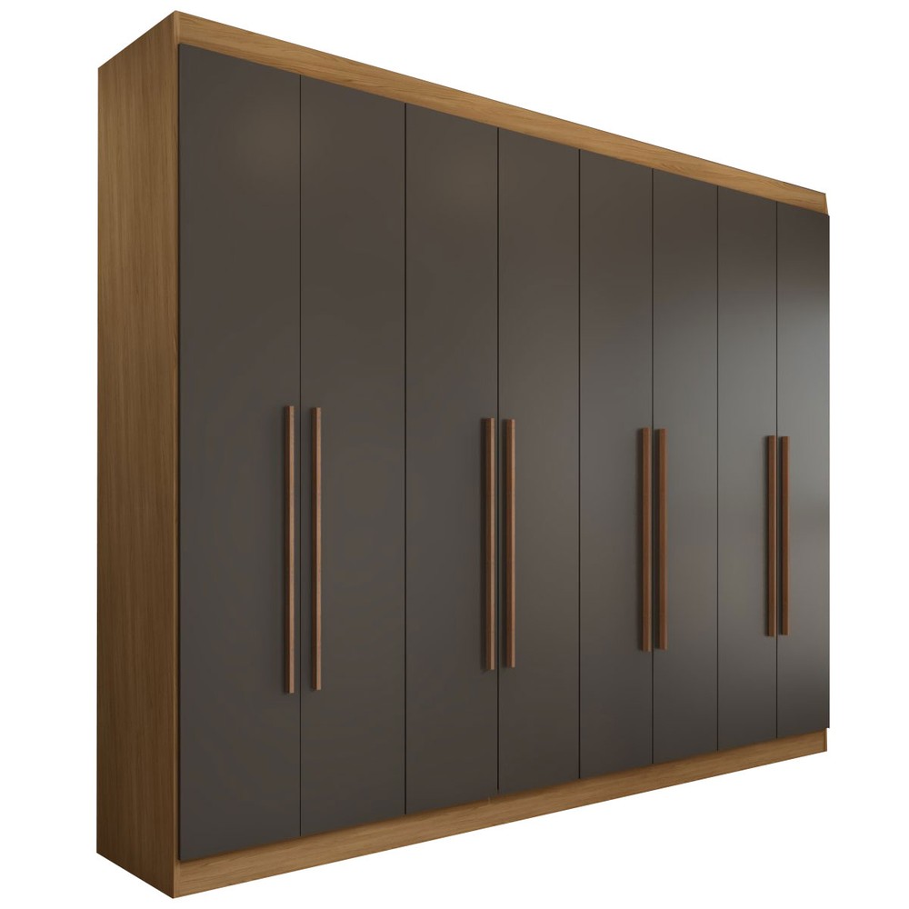 O(a) Guarda-Roupa Casal Ele e Ela 8 Portas 4 Gavetas 8 Prateleiras Cinamomo/Chumbo - Panorama Móveis é produzido em MDP na escala de brilho Semi-Fosco, e possui um grau de dificuldade de montagem: Médio.