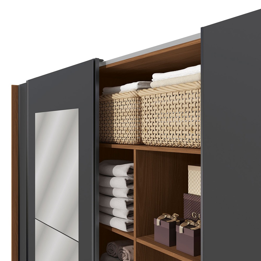 O(a) Guarda-Roupa Casal Eloy 3 Portas 4 Gavetas com Espelho Canela/Grafite - Kappesberg é produzido em MDP na escala de brilho Fosco, e possui um grau de dificuldade de montagem: Médio.