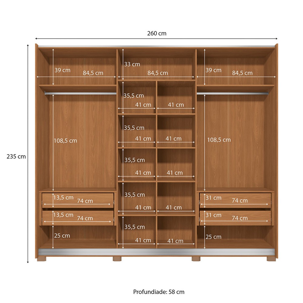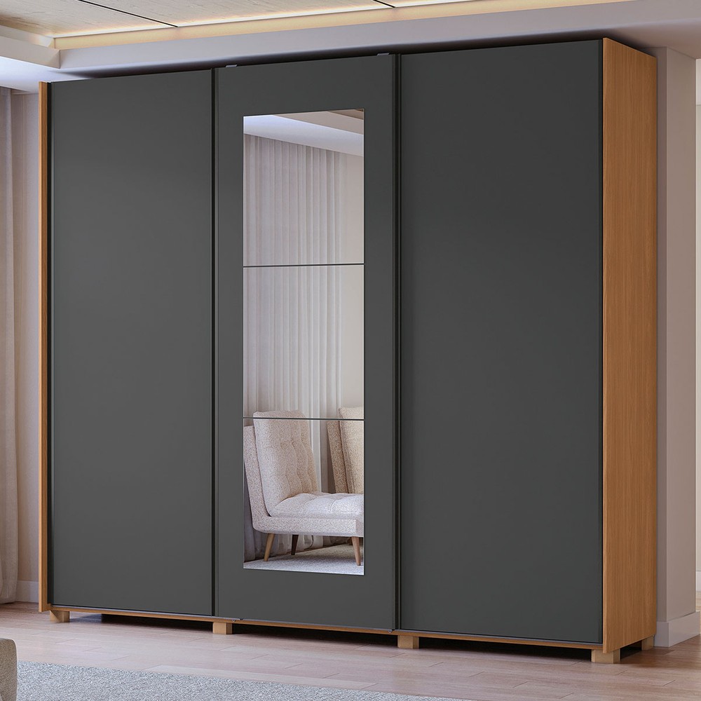 Guarda-Roupa Casal Eloy 3 Portas 4 Gavetas com Espelho Canela/Grafite - Kappesberg