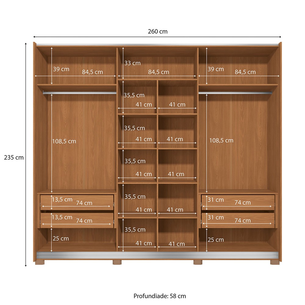Guarda-Roupa Casal Eloy 3 Portas 4 Gavetas com Espelho Canela - Kappesberg