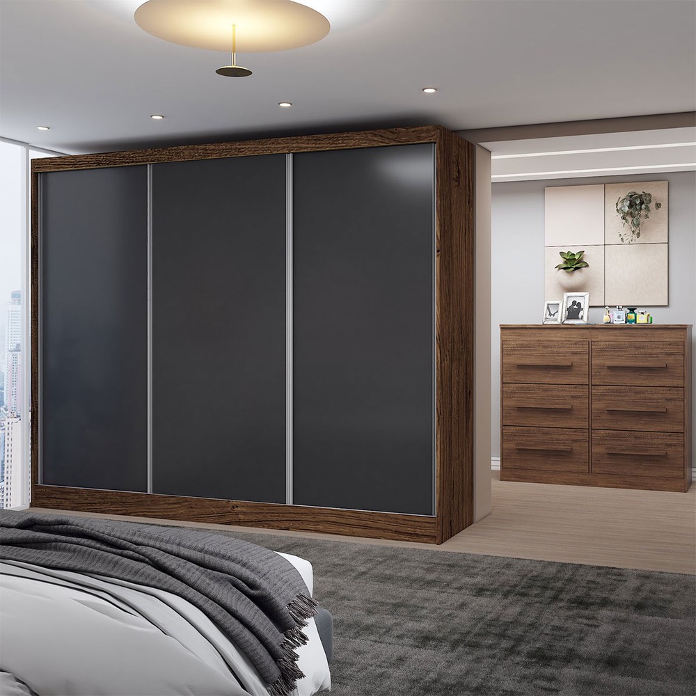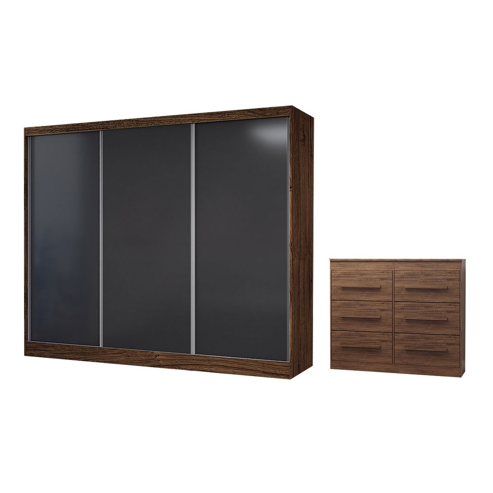 Guarda-Roupa Casal Europa 3 Portas 10 Gavetas 100% Mdf Castanho/Preto - Panorama Móveis