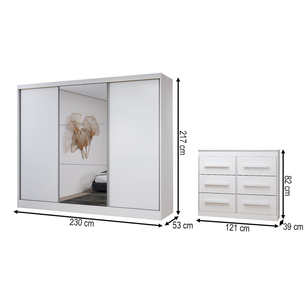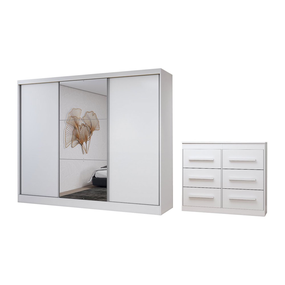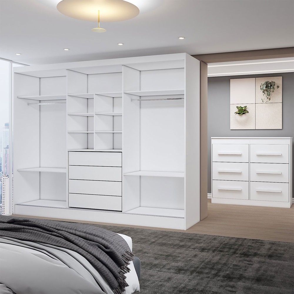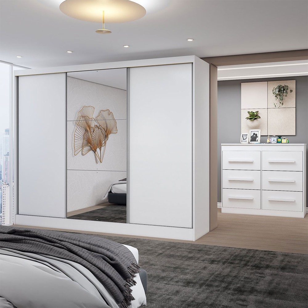 Guarda-Roupa Casal Europa 3 Portas 10 Gavetas 100% Mdf com Espelho Branco - Panorama Móveis