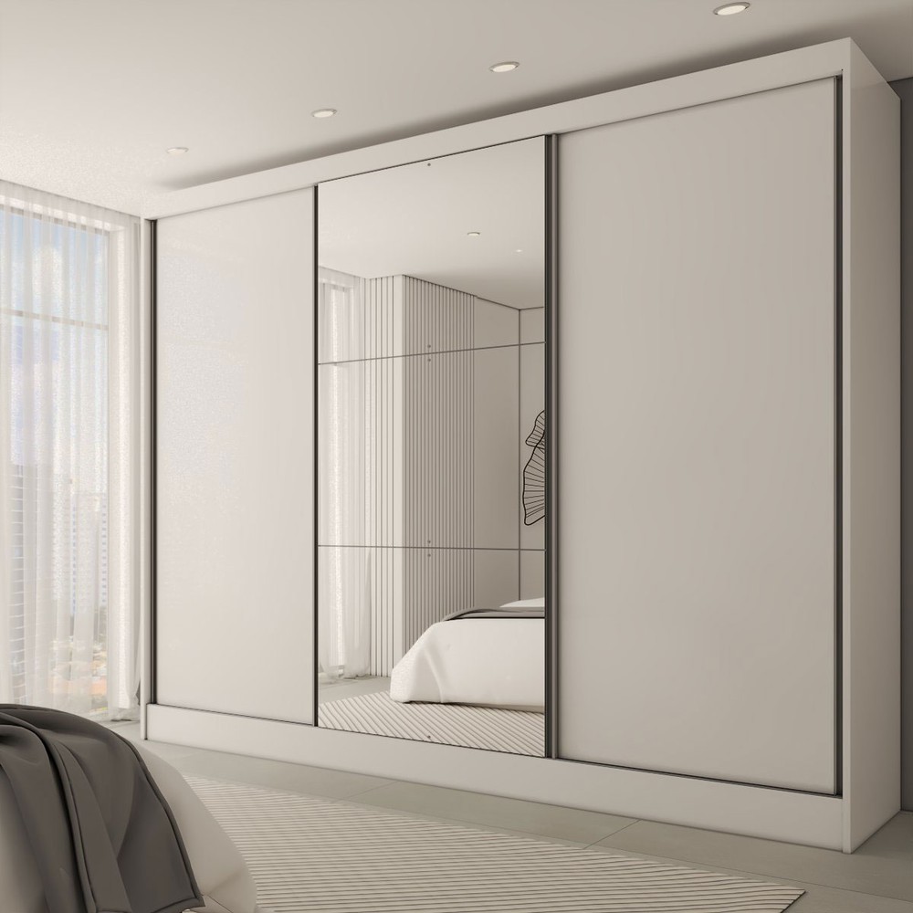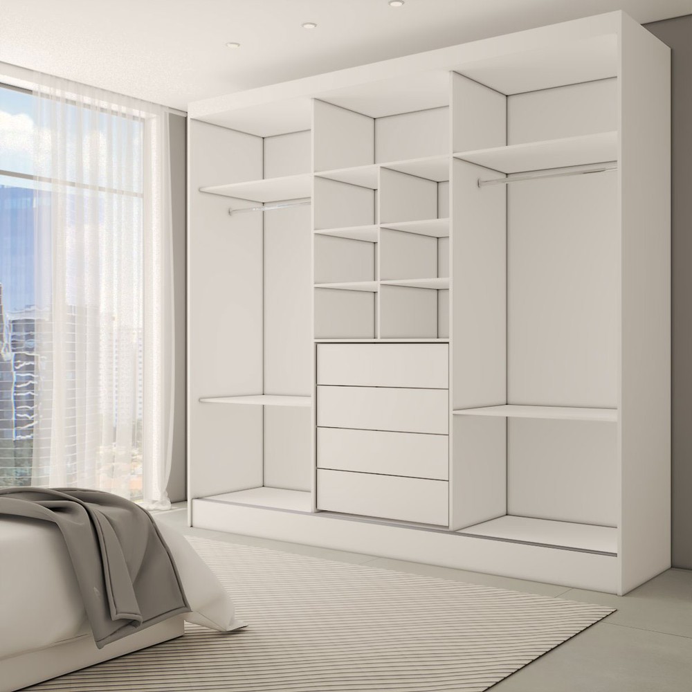 Guarda-Roupa Casal Europa 3 Portas 4 Gavetas 100% Mdf com Espelho Branco - Panorama Móveis