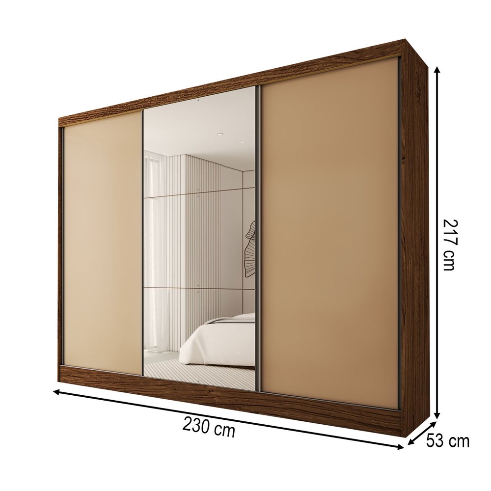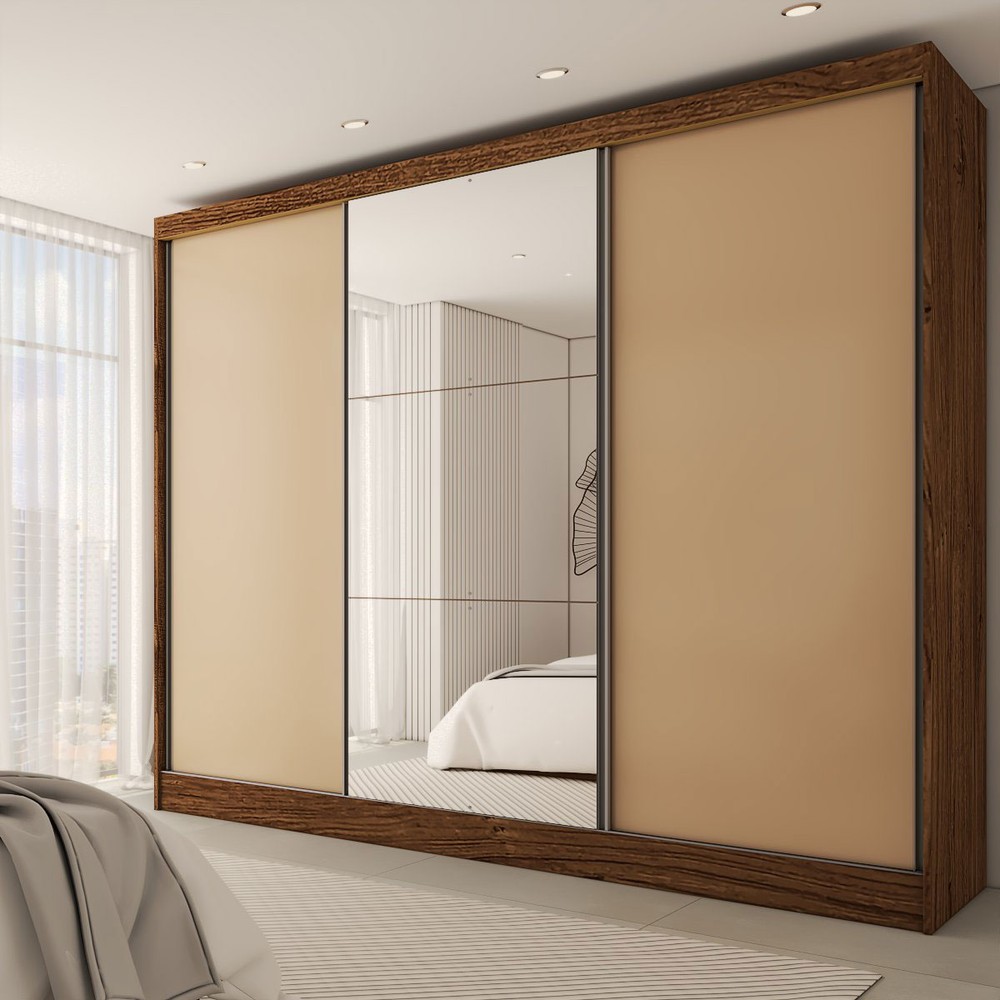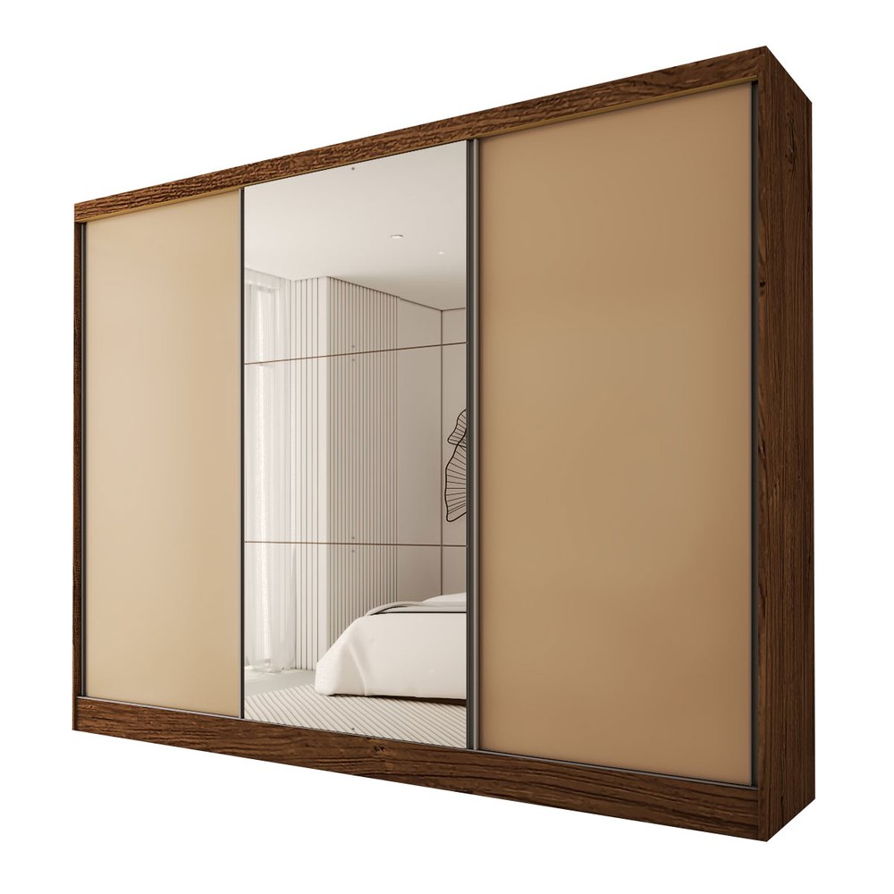 Guarda-Roupa Casal Europa 3 Portas 4 Gavetas 100% Mdf com Espelho Castanho/Nude - Panorama Móveis