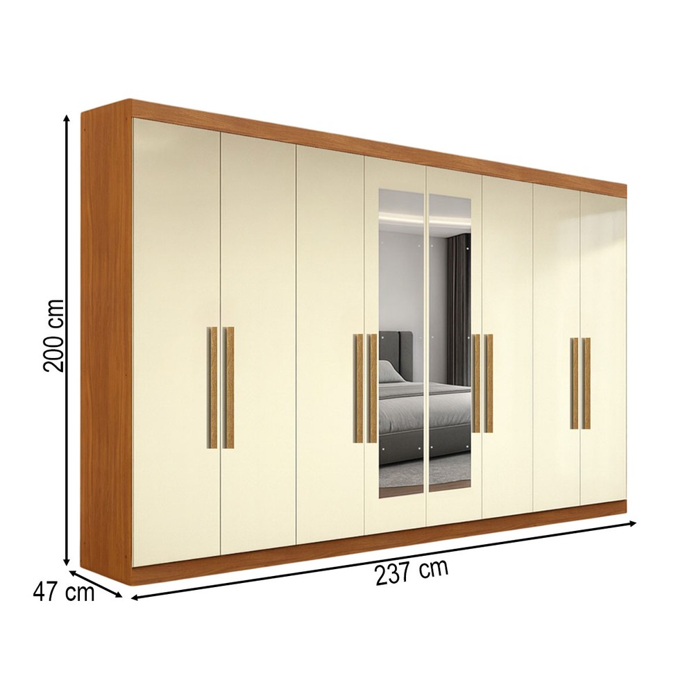 O(a) Guarda-Roupa Casal German 8 Portas 4 Gavetas com Espelho Cinamomo/Off White - Maxel é produzido em MDP na escala de brilho Brilhante, e possui um grau de dificuldade de montagem: Médio.