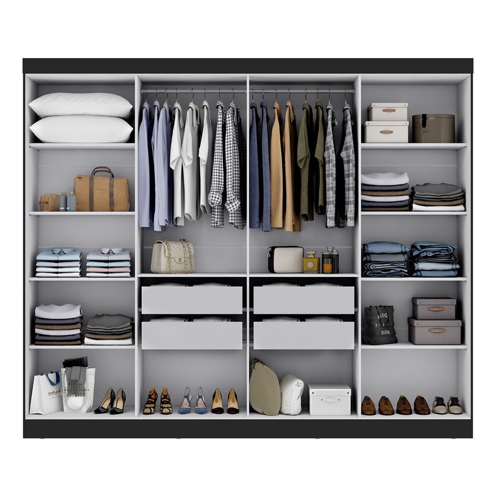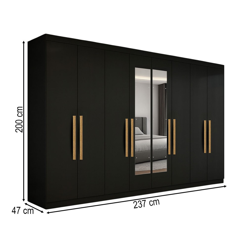 O(a) Guarda-Roupa Casal German 8 Portas 4 Gavetas com Espelho Preto - Maxel é produzido em MDP na escala de brilho Brilhante, e possui um grau de dificuldade de montagem: Médio.