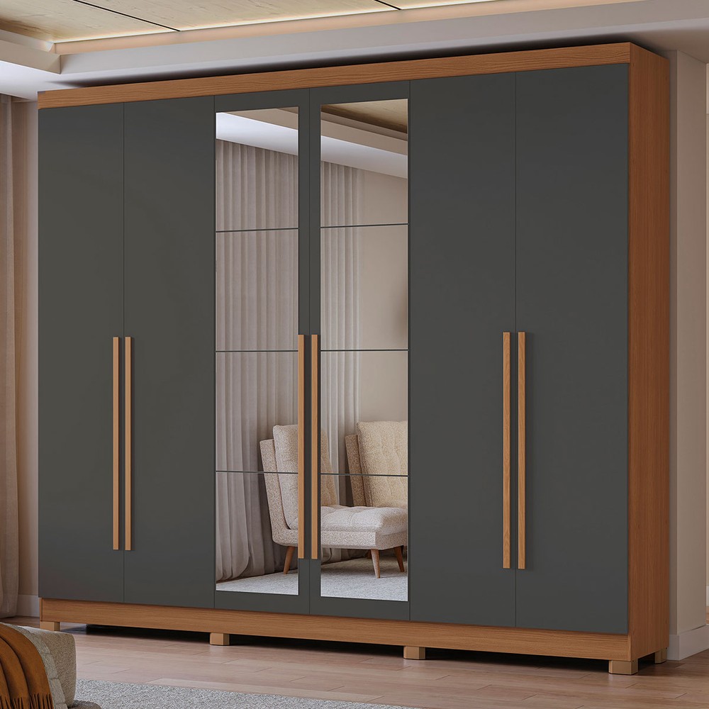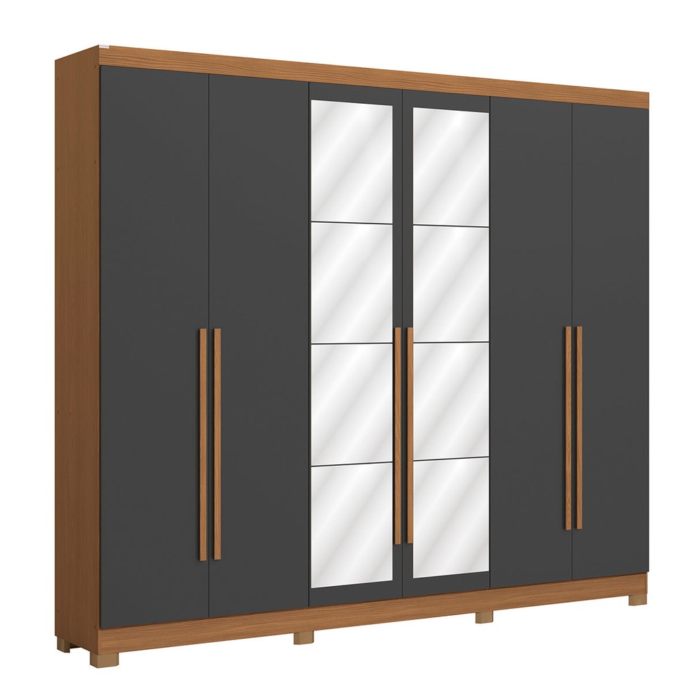 Guarda-Roupa Casal Girard 6 Portas 3 Gavetas com Espelho Canela/Grafite - Kappesberg