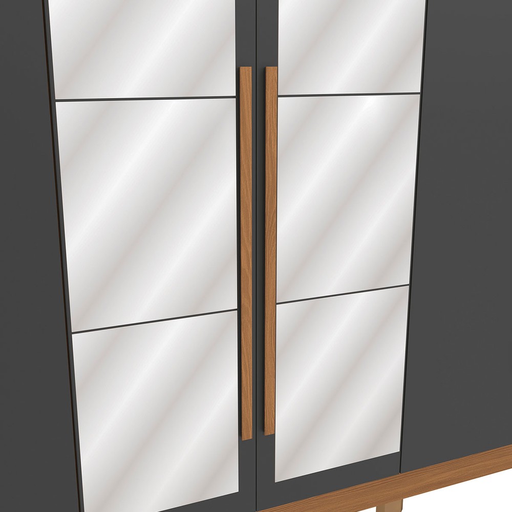 Guarda-Roupa Casal Girard  6 Portas 3 Gavetas com Espelho Canela/Grafite - Kappesberg