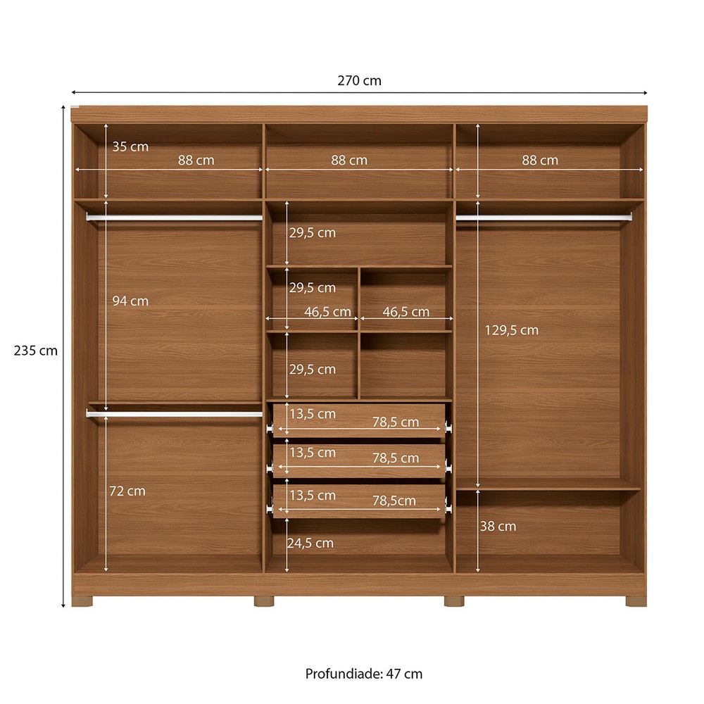 O(a) Guarda-Roupa Casal Girard 6 Portas 3 Gavetas com Espelho Canela/Grafite - Kappesberg é produzido em MDP na escala de brilho Fosco, e possui um grau de dificuldade de montagem: Médio.
