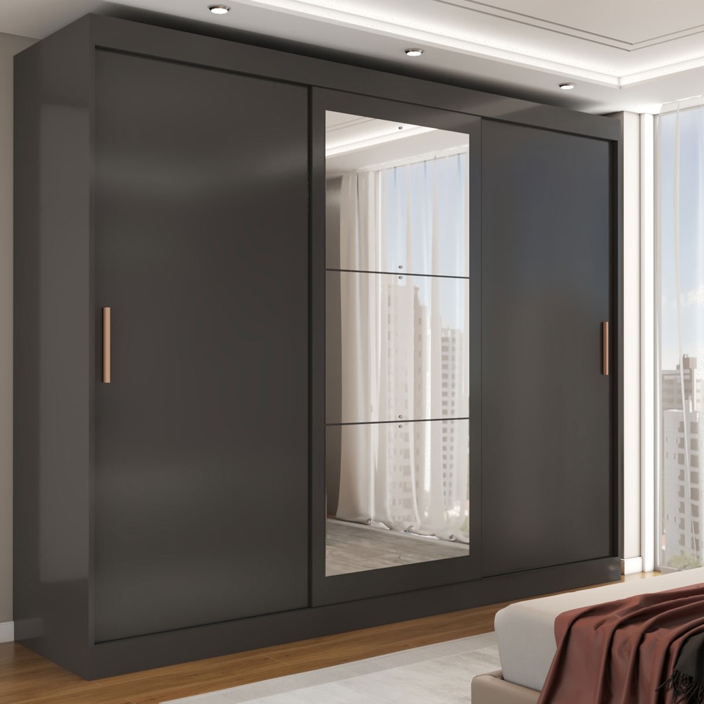 O(a) Guarda-Roupa Casal Harvard 3 Portas 2 Gavetas com Espelho 100% Mdf Preto - Panorama Móveis é produzido em 100% MDF na escala de brilho Semi-Brilho, e possui um grau de dificuldade de montagem: Médio.