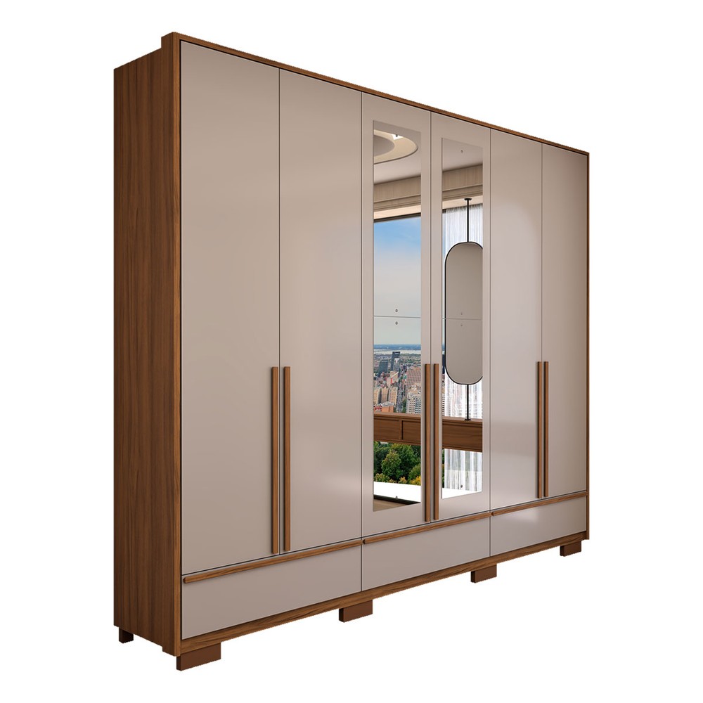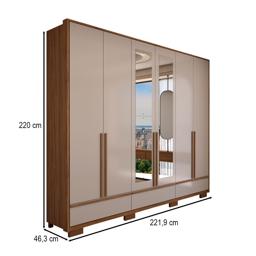 O(a) Guarda-Roupa Casal Hill 6 Portas 3 Gavetas com Espelho 100% Mdf Freijó Trend/Off White Tx - Panorama Móveis é produzido em 100% MDF na escala de brilho Fosco, e possui um grau de dificuldade de montagem: Médio.