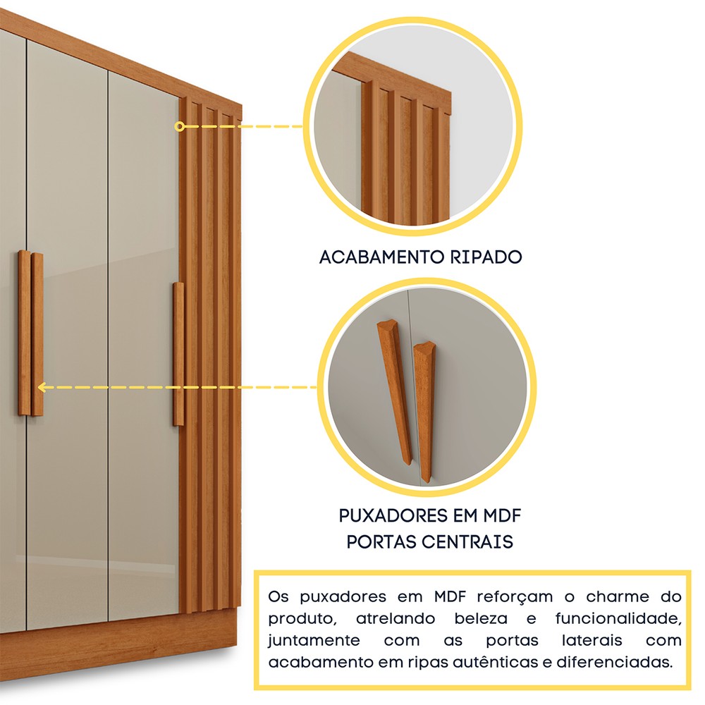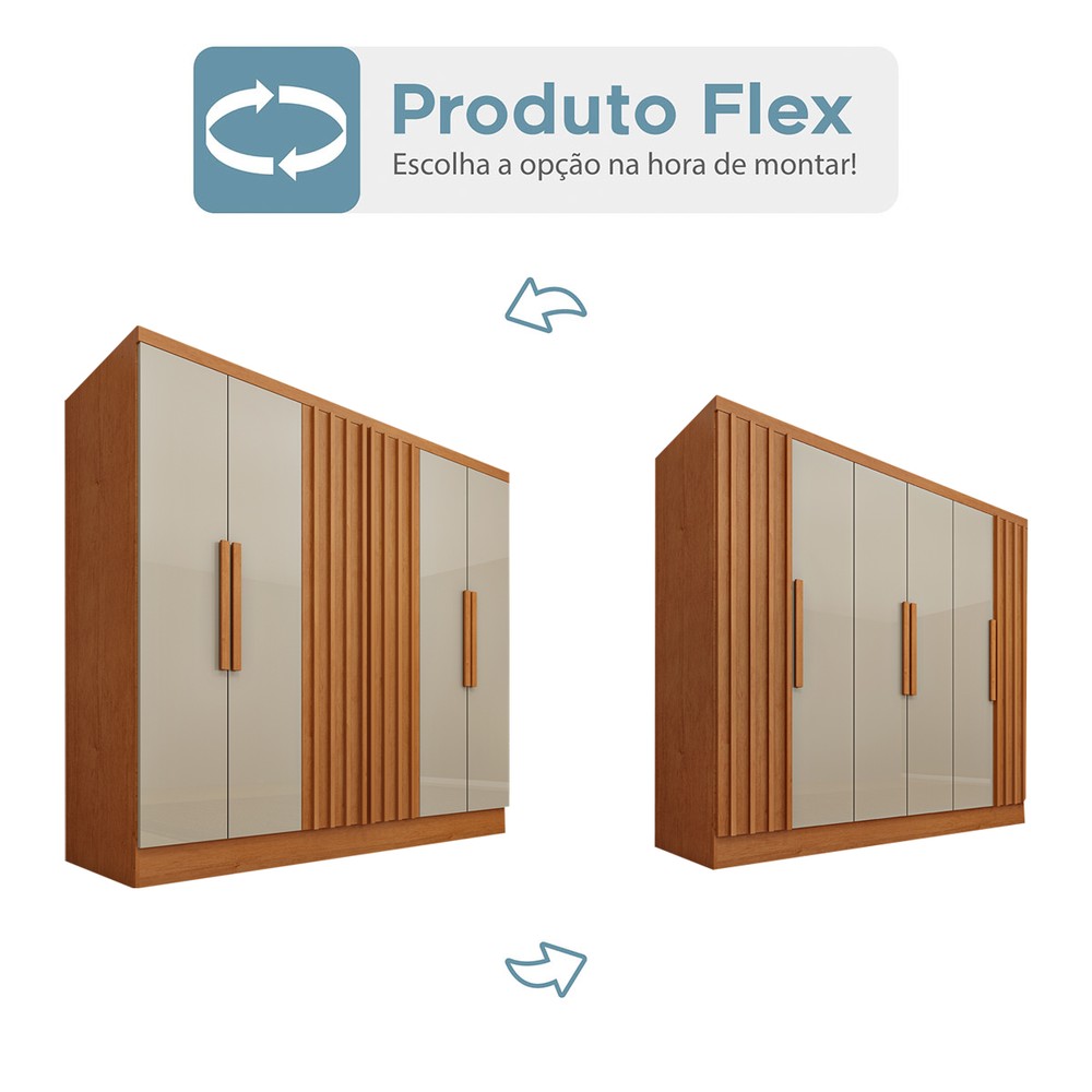 Guarda-Roupa Casal Itaperuna 6 Portas 4 Gavetas Ripado Flex Cinamomo/Off White - Tcil Móveis