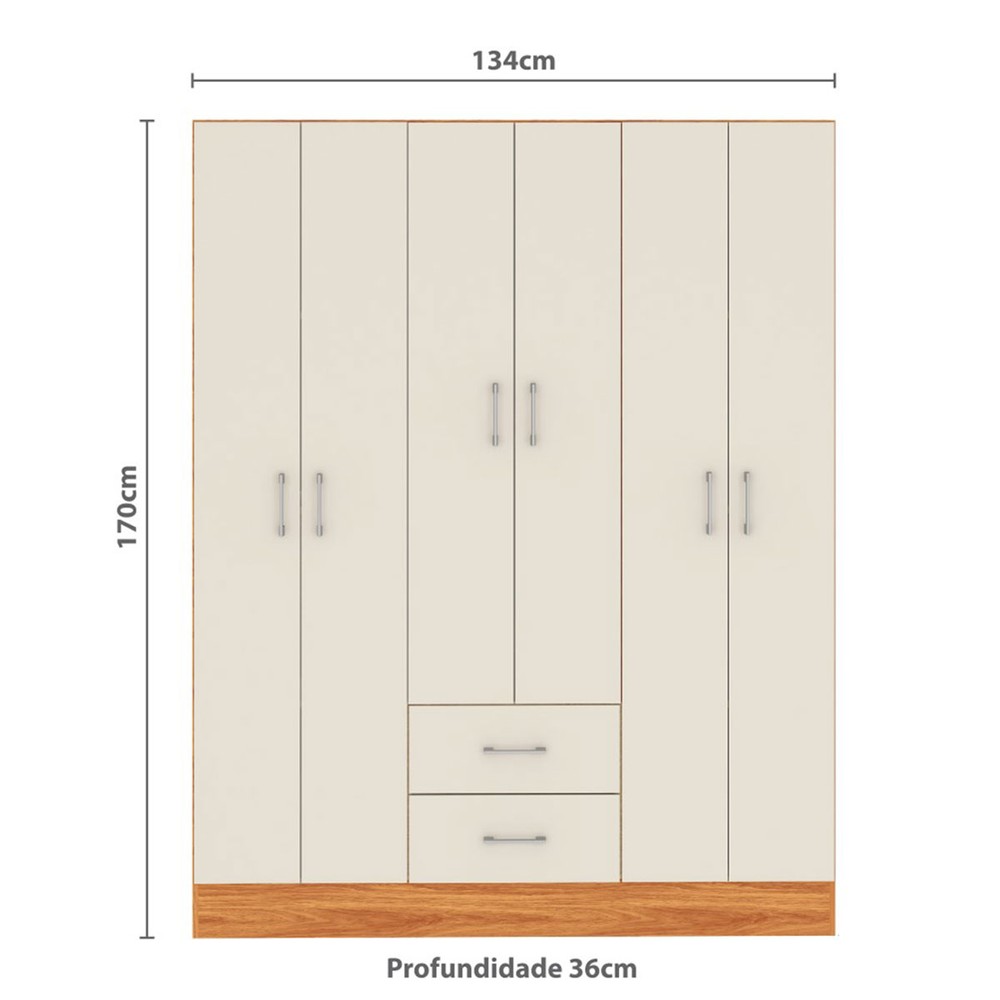 Guarda-Roupa Casal Jamaica 6 Portas 2 Gavetas Cinamomo/Off White - Fellicci