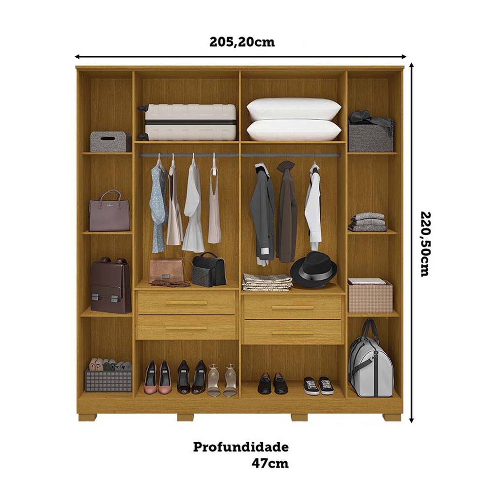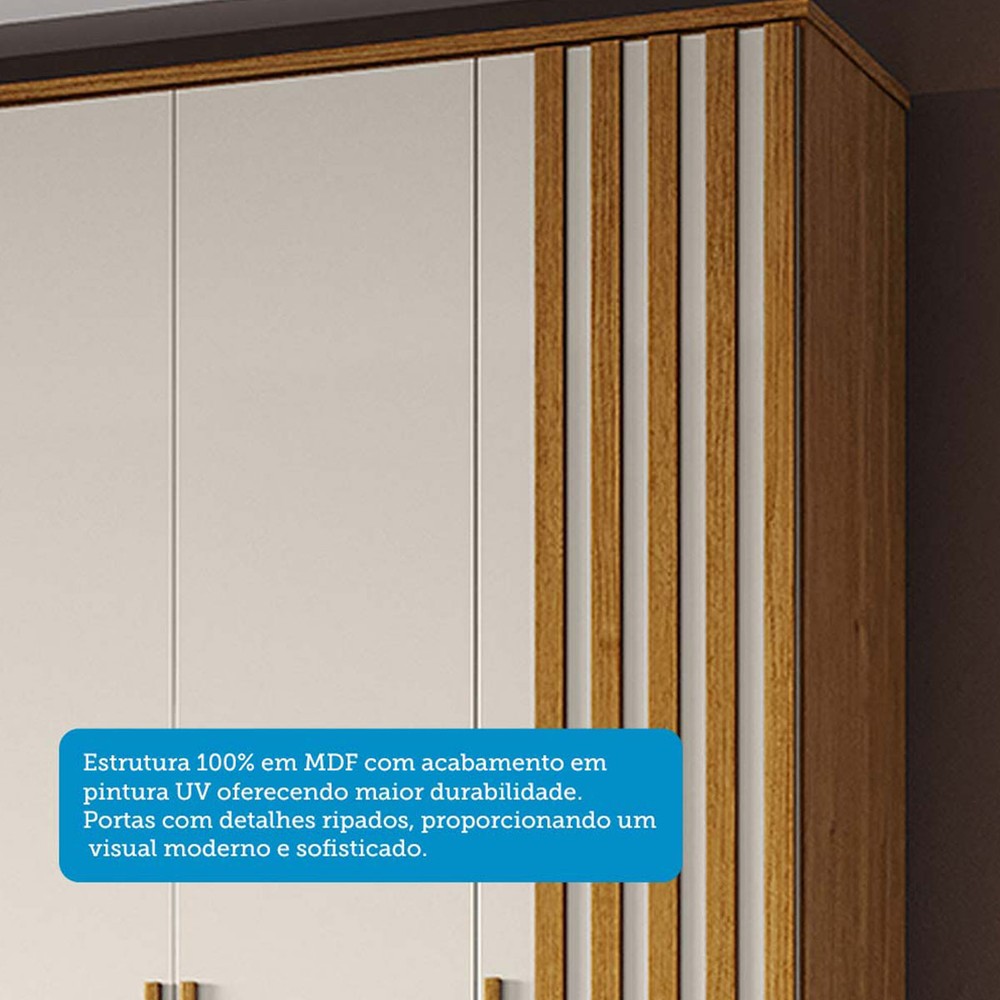 O(a) Guarda-Roupa Casal Jamile 6 Portas 4 Gavetas 100% Mdf Cinamomo/Off White - Acp Móveis é produzido em 100% MDF na escala de brilho Ajustar, e possui um grau de dificuldade de montagem: Difícil.
