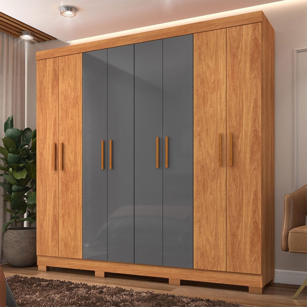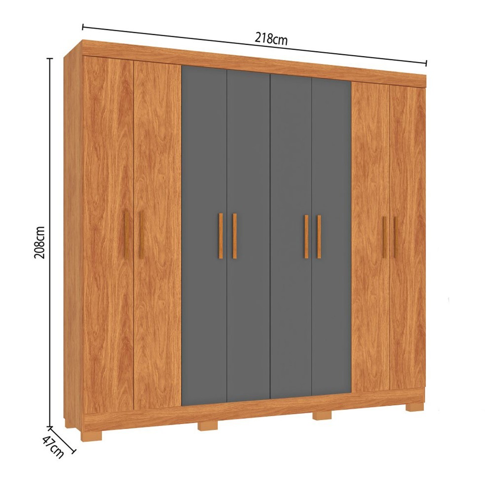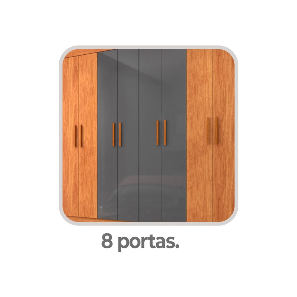 Guarda-Roupa Casal Las Vegas 8 Portas 2 Gavetas Cinamomo/Grafite - Fellicci