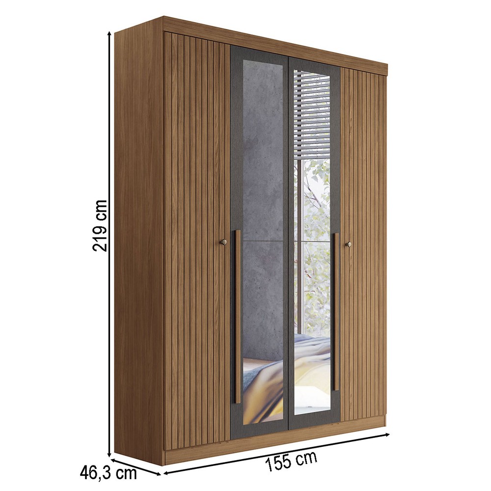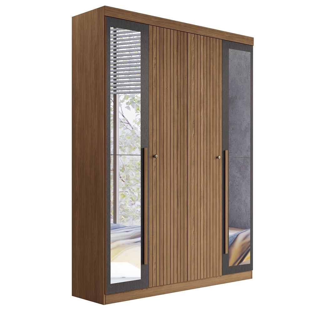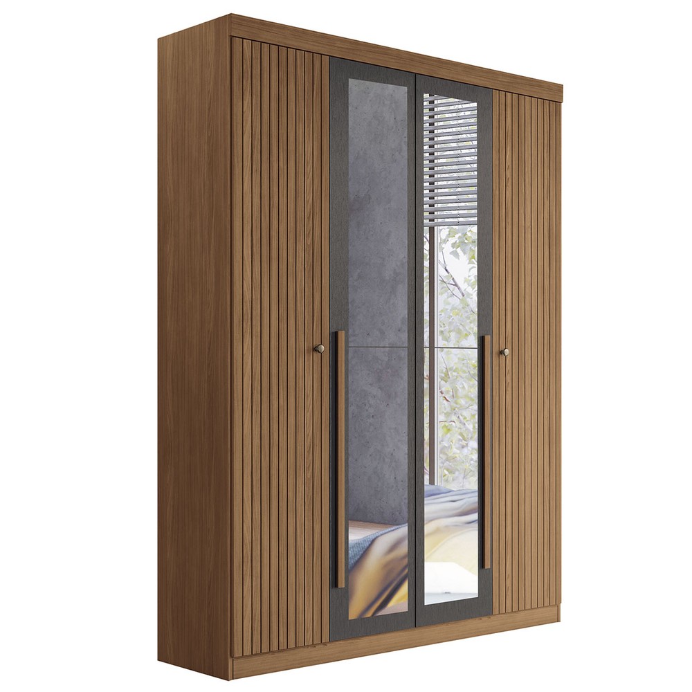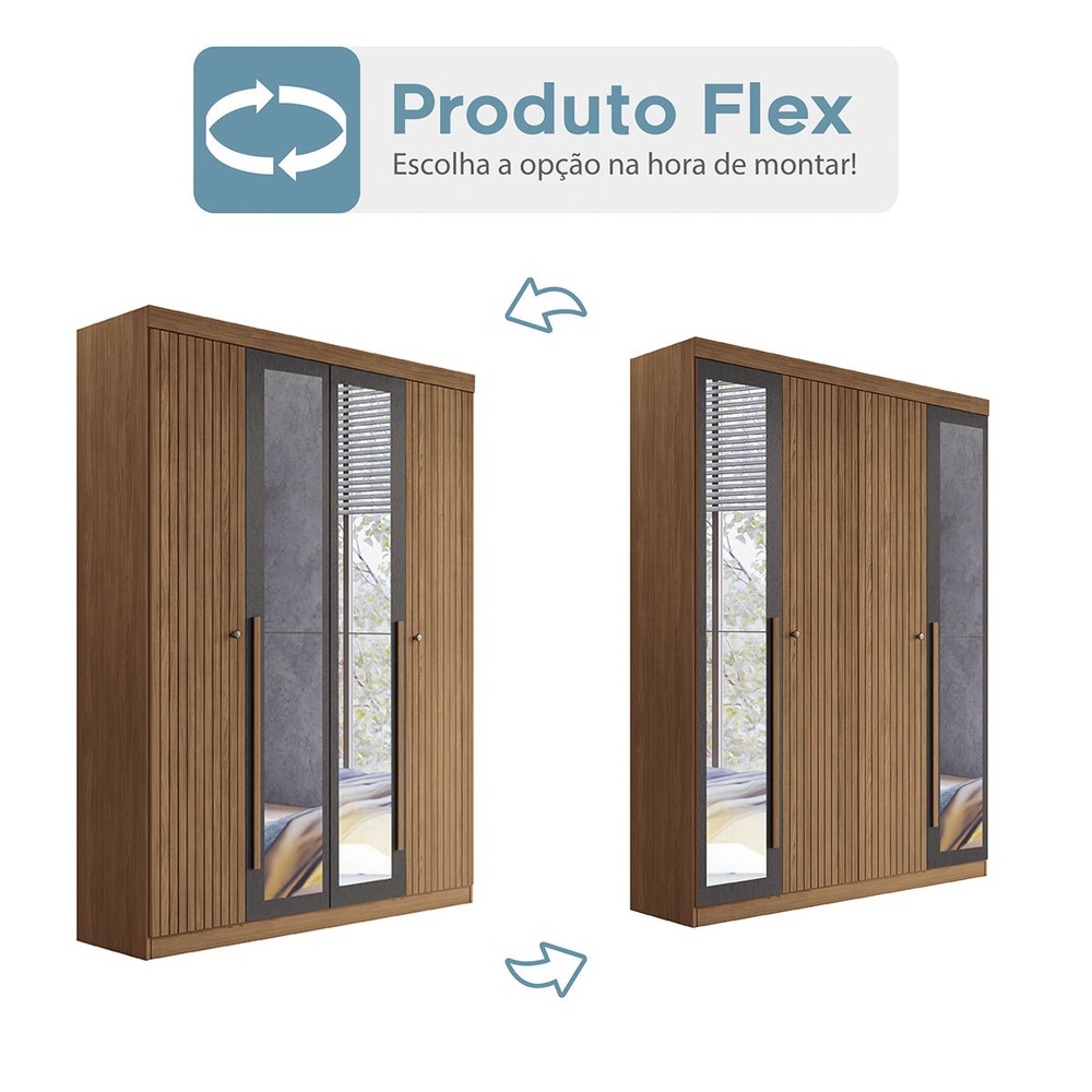 O(a) Guarda-Roupa Casal Loanda 4 Portas 2 Gavetas Ripado Flex Jatoba/Grafite com Espelho - Pnr Móveis é produzido em MDP e HDF na escala de brilho Semi-Fosco, e possui um grau de dificuldade de montagem: Médio.