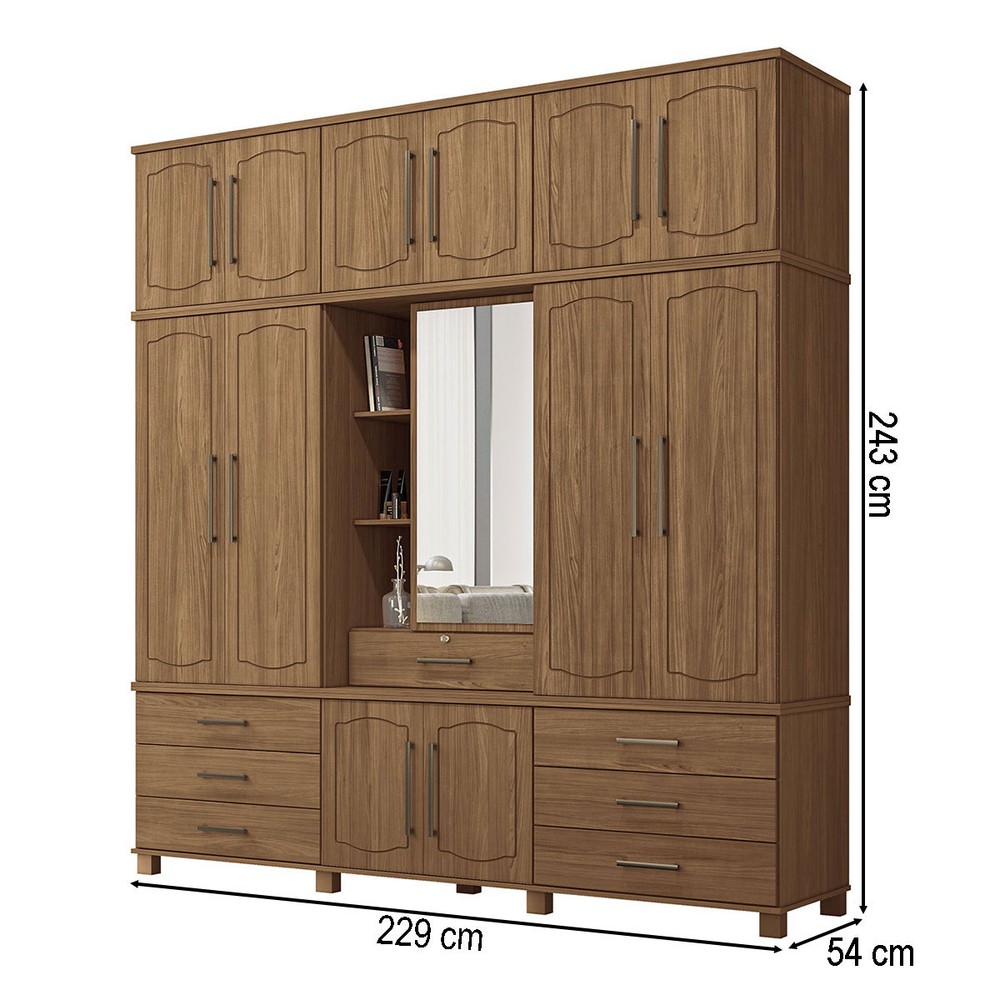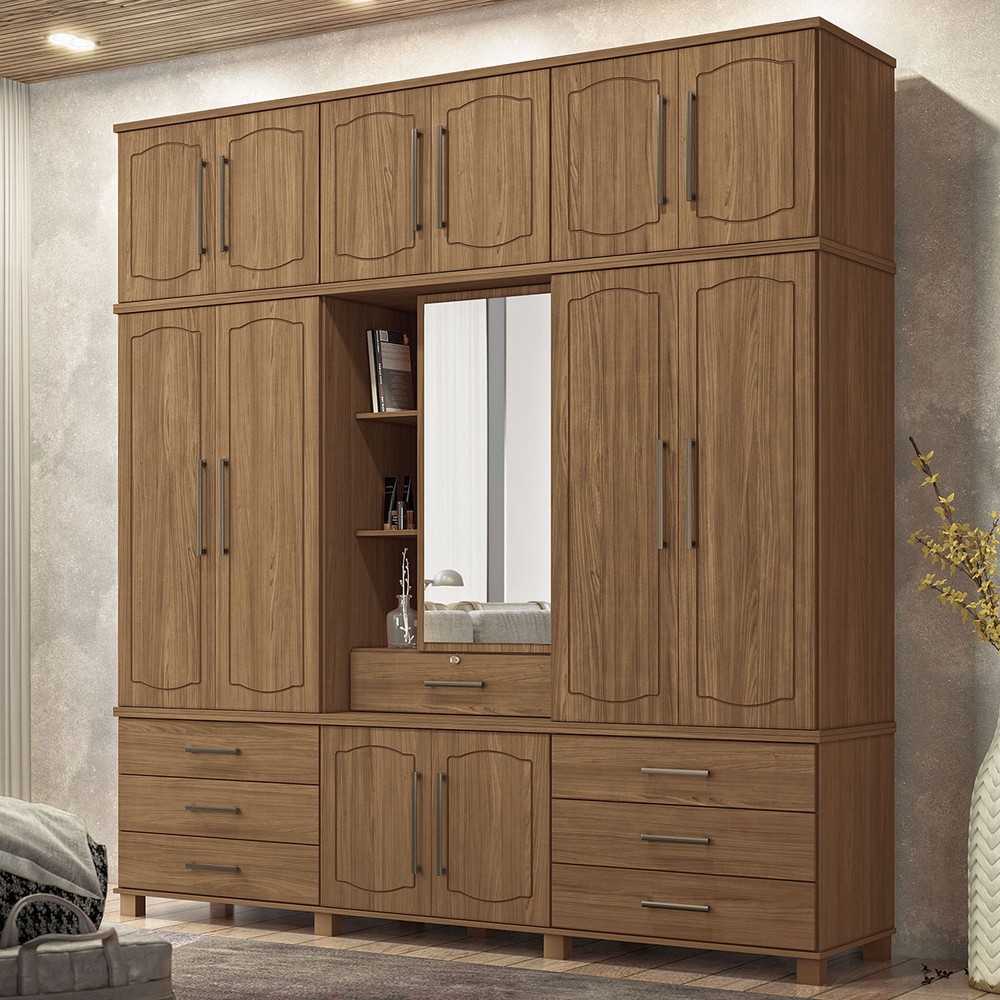 O(a) Guarda-Roupa Casal Londres Vaticano 13 Portas 7 Gavetas com Espelho Jatoba - Pnr Móveis é produzido em MDP na escala de brilho Semi-Fosco, e possui um grau de dificuldade de montagem: Médio.