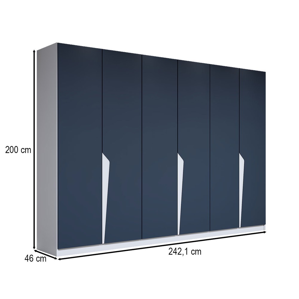 O(a) Guarda-Roupa Casal Luxe 2,42 Metros 6 Portas 4 Gavetas Branco/Azul - Panorama Móveis é produzido em MDF e MDP na escala de brilho Semi-Fosco, e possui um grau de dificuldade de montagem: Médio.